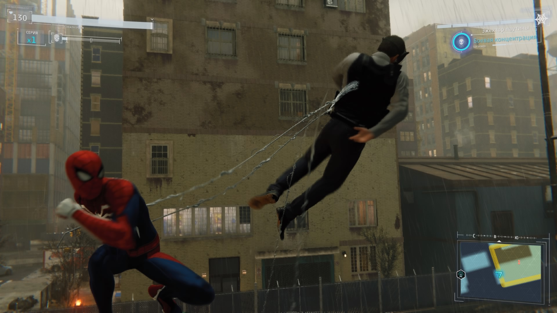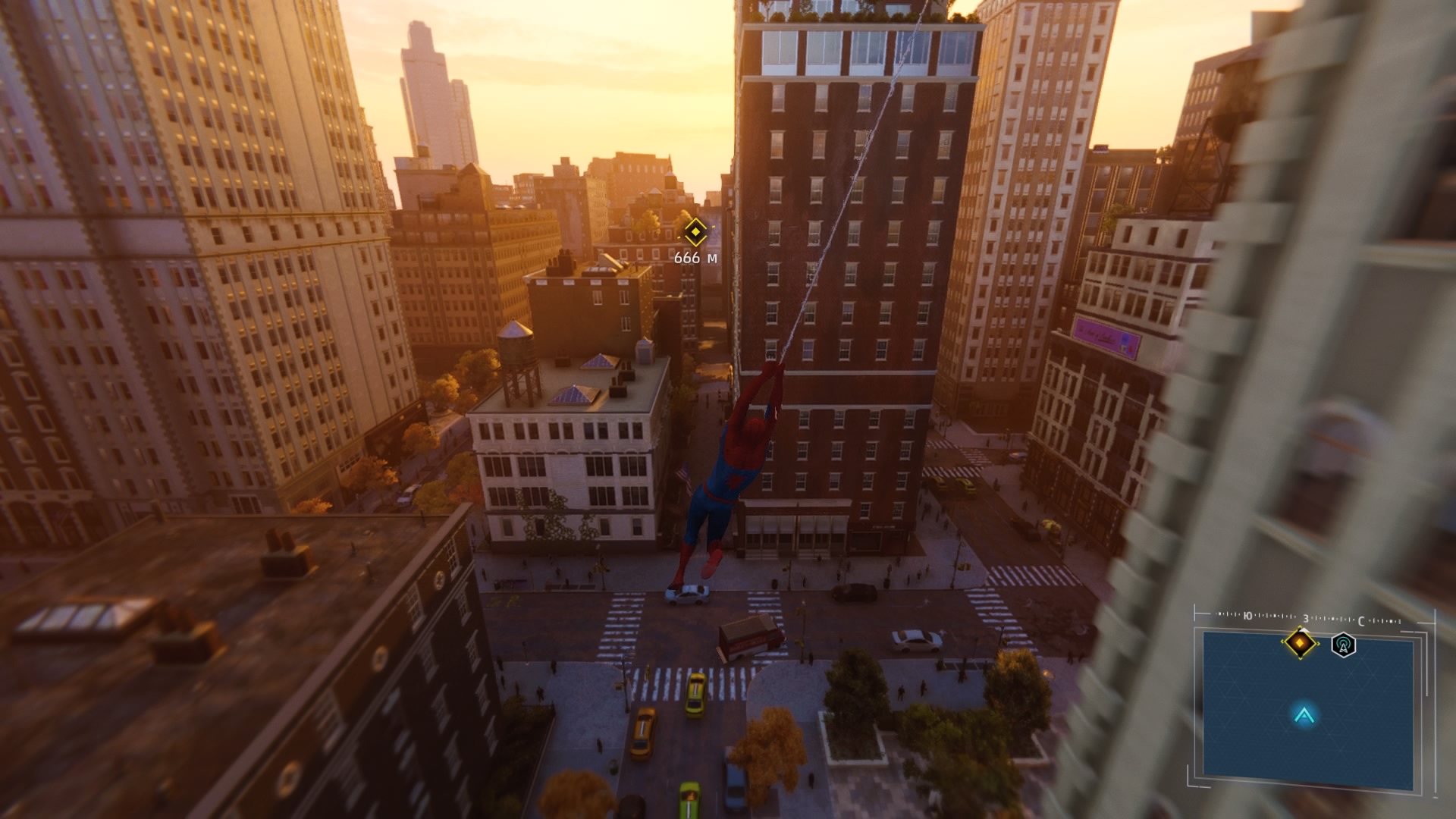 Одна из важнейших и увлекательнейших механик в игре — это перемещение по городу: её Insomniac Games проработала великолепно. Этому игрока учат в самом начале игры: Человек-паук оказывается в воздухе и далее, с помощью паутины, нужно перемещаться между небоскрёбов Нью-Йорка. С базовой точки зрения, система проста и практически сразу все эти полёты на огромной скорости между домами и деревьями, над дорожными пробками и парками очень увлекают. Это действительно весело и невероятно зрелищно.