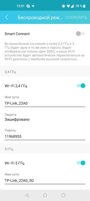 Описан весть процесс: включение и выключение сетевых устройств, регистрация в сети нового роутера, установка пароля и выбор параметров подключения. Есть возможность выбрать отдельные имена для точек доступа или же объединить обе (2,4 и 5 ГГц) в одну сеть с общим именем, эта функция называется Smart Connect. В общем всё, ваша новая сеть уже работает.