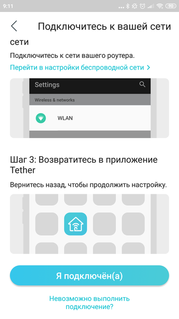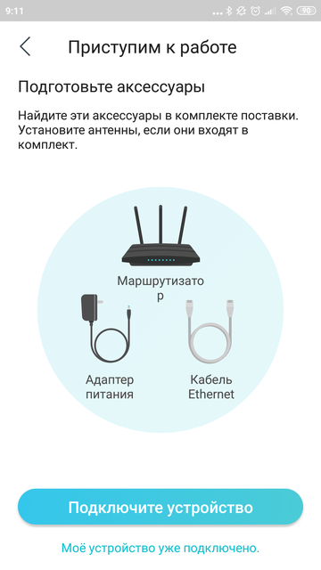 Для работы с большинством роутеров TP-Link удобно использовать мобильное приложение TP-Link Tether. Оно содержит простой пошаговый мастер первоначального подключения, рассчитанный на самых маленьких максимально широкий круг пользователей. Но можно обойтись и без приложения. Кабель питания в гнездо, вилку в розетку, интернет в порт WAN. Затем подключаемся к беспроводной сети, используя название и пароль с наклейки внизу устройства. Примерно это же и посоветует мастер настройки в приложении, только подробнее и с картинками. После подключения идем на http://tplinkwifi.net (он же 192.168.0.1) и завершаем настройку.