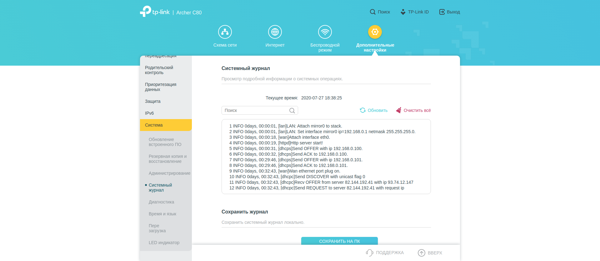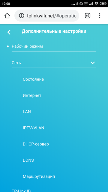 Но на этом, в общем-то, всё. Расширенные возможности скрываются в классической панели управления с веб-интерфейсом. Как вы уже знаете, панель эта доступна из локальной сети по адресу http://tplinkwifi.net (он же 192.168.0.1). Первое, на что хочу обратить внимание — адаптивный интерфейс. Этой панелью удобно пользоваться с телефона. Я в курсе, что на дворе 2020 год, но панели управления роутеров по удобству отстают от нормального календаря на несколько лет, приятно видеть исключения.