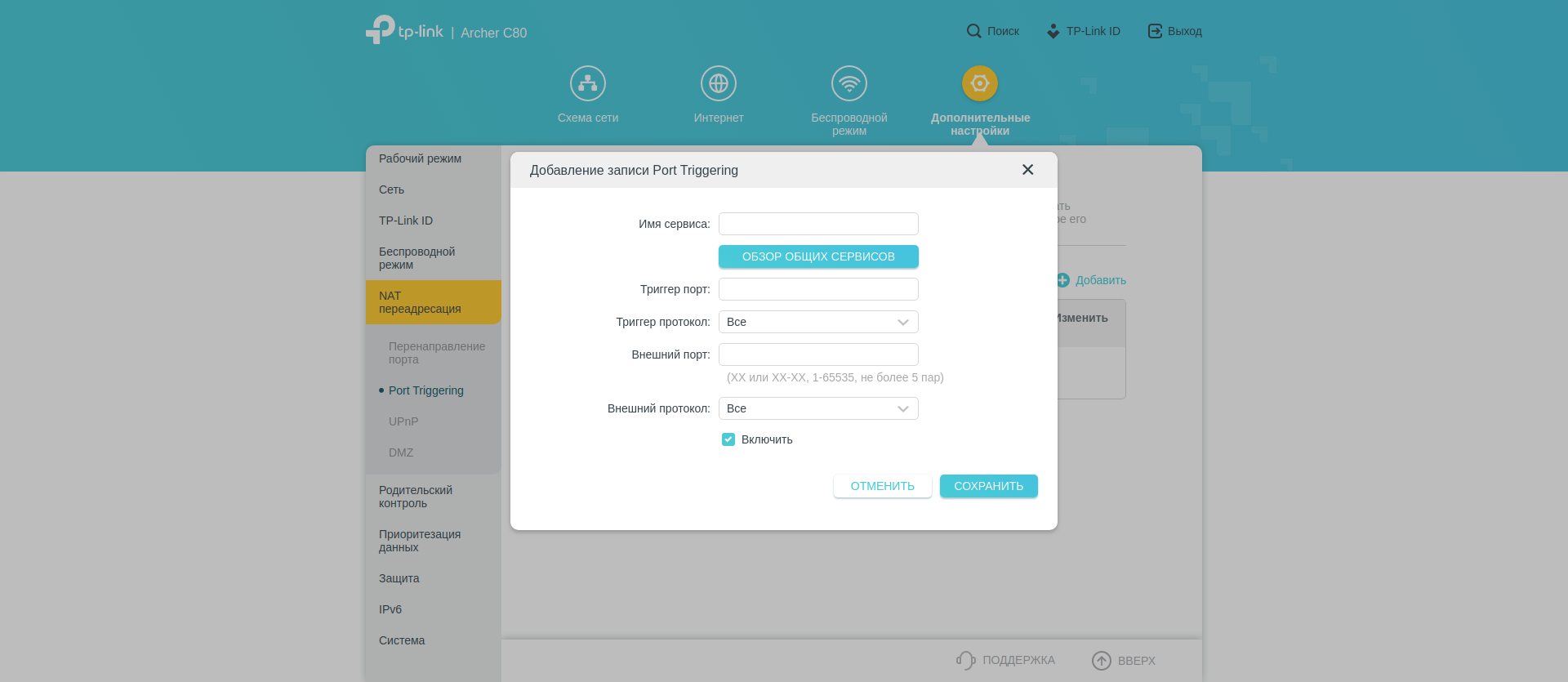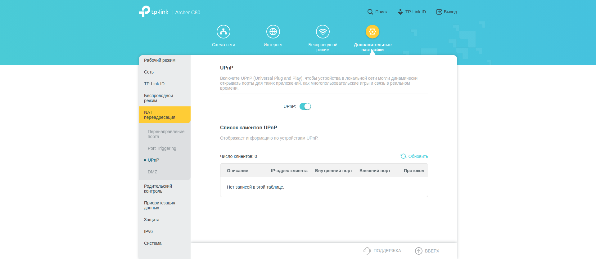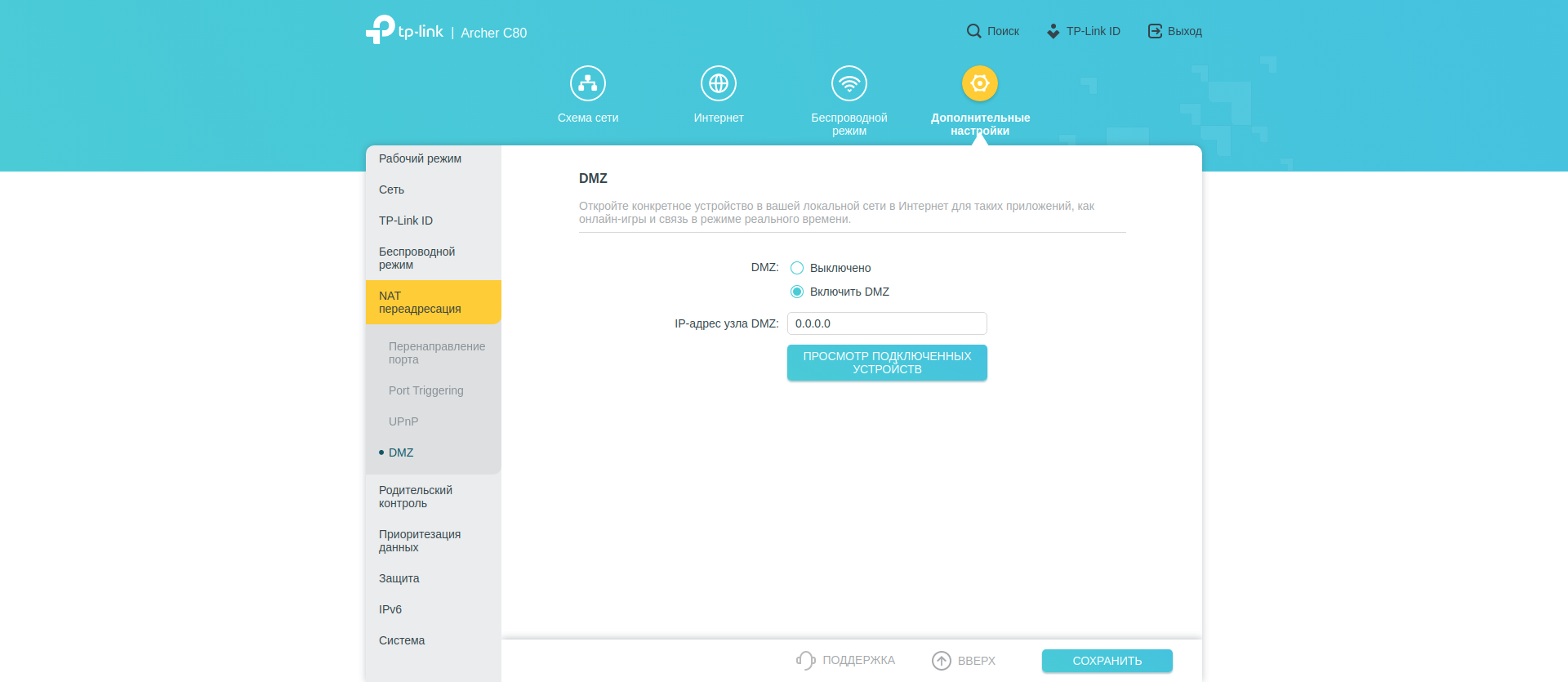Нескольких страниц удостоились настройки NAT. Есть перенаправление и триггеринг портов, «рубильник» UPnP и список активных клиентов. Тут же можно активировать DMZ для выставления в интернет избранного локального адреса.