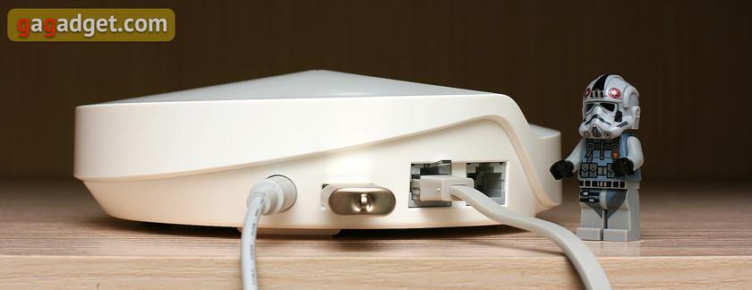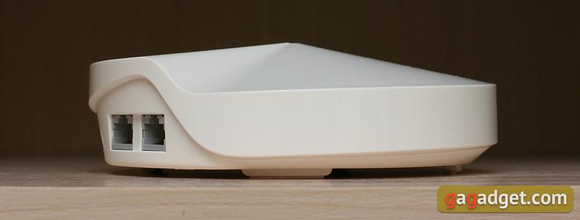 Как две летающих тарелки. Или три, если у вас набор из трех блоков. Все блоки Deco устроены одинаково и взаимозаменимы. Каждый имеет два гигабитных порта RJ-45, порт USB и гнездо для подключения блока питания.