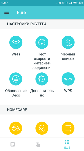 Что ещё? Давайте смотреть в приложении. Классического веб-интерфейса у системы нет, всё управляется исключительно со смартфона. Причем для работы с настройками сети необязательно быть подключенным именно к ней. Вы с управляющим смартфоном можете быть хоть на работе, хоть за тридевять земель, главное чтобы интернет был, для этого нас и просили завести аккаунт. Так вот, настроек в приложении, пожалуй, поменьше, чем в классической веб-панели управления среднестатистическим роутером. На самом видном месте основного экрана — статус, настройки антивируса и родительского контроля, а также список подключенных устройств. По каждому из них можно посмотреть текущую активность (скорость передачи данных в обе стороны) и при необходимости установить высокий приоритет. А вот заблокировать нежелательного клиента прямо отсюда нельзя. Для этого нужно будет отправиться в раздел «ещё» и там добавить провинившегося в чёрный список. И вообще в этом скромном «ещё» собраны все традиционные настройки. Здесь можно включить или выключить один из диапазонов частот, поменять имя сети и пароль, включить гостевую сеть, протестировать скорость соединения и обновить прошивку устройства.