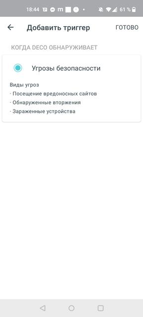 А теперь вернемся в приложение. В разделе «Обзор» можно увидеть все подключенные к сети устройства, как роутеры, так и клиенты. Далее следует секция «Действия умного дома», где можно создавать ярлыки и сценарии автоматизации для совместимых устройств. К сожалению, в моем распоряжении таковых не оказалось, поэтому из сценариев автоматизации удалось создать только отправку уведомлений при обнаружении сетевых угроз.