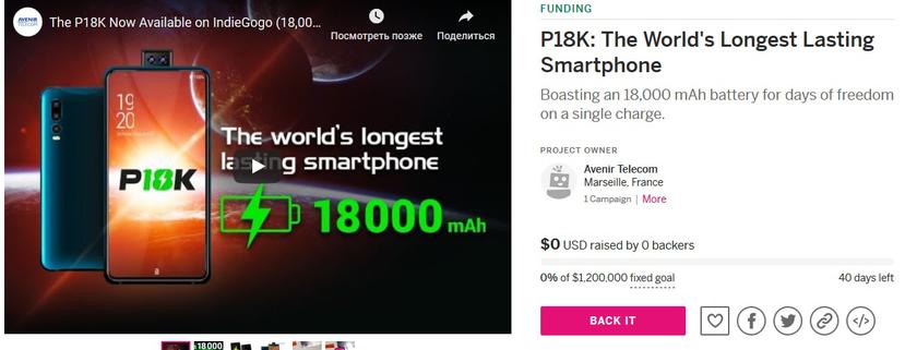 Не варто забувати, що Indiegogo - це тільки майданчик для збору замовлень і грошей на виробництво. Тобто якщо ця сума не збереться - ймовірно, Power Max P18K Pop не дістанеться покупців та полиць магазинів, так і залишившись гучною дивиною. А з огляду на вартість такого напівсмартфона-напівакумулятора та кількість цифр у необхідній сумі - такий підсумок можливий. Принаймні, ніхто наразі не захотів оформити замовлення.