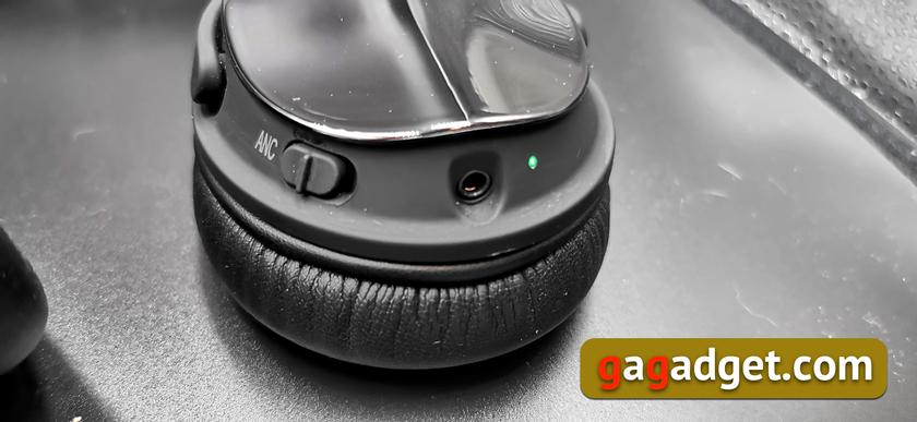 На лівому навушнику знаходяться мікрофон, порт microUSB для зарядки з світлодіодом стану, клавіші регулювання гучності і окрема кнопка Bluetooth, яка відіграє роль включення. На правому навушнику розміщені перемикач шумопоглинання (ANC - Active Noise Cancellation), отвір для кабелю і світлодіодний індикатор роботи системи шумопоглинання. Управління таке ж, як і на будь-який іншій бездротовій гарнітурі - тривале натискання на клавіші гучності переходить до наступної або попередньої пісні. Для відповіді на дзвінок або програвання/паузи натискаємо кнопку з позначкою Bluetooth. Для скасування вхідного дзвінка - тривале натискання.