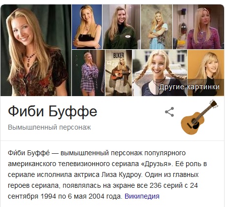Фібі - звичайно ж, поруч з цим ім'ям намальована гітара, а сама Фібі заспіває для вас ту саму пісню про драного кота.
