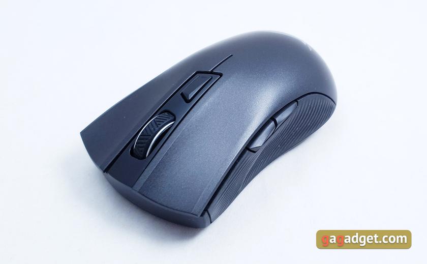 Колесо прокрутки має прогумовану поверхню з діагональними насічками. Відсічки енкодера чіткі та інформативні, при швидкому обертанні є характеріний звук, але він не гучний і не дратує. Бічні кнопки компактні, але відчутно виступають над поверхнею мишки і користуватися ними цілком комфортно.