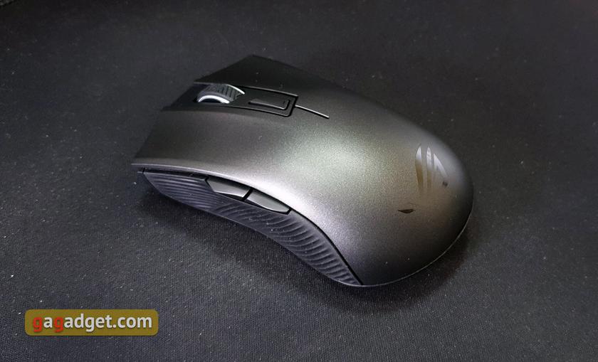 Сама ASUS ROG Strix Carry легка: лише 72.9 г, але дві батарейки AA додають близько 40 г і миша стає помітно важчою, що може не сподобатися шанувальникам легких маніпуляторів. Виглядає ROG Strix Carry дуже приємно.