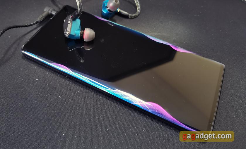 Інтерфейси: дводіапазонний Wi-Fi 802.11 a/b/g/n/ac 2.4 ГГц та 5 ГГц, Bluetooth 5.0 LE, глобальні системи позиціонування GPS, ГЛОНАСС, Beidou, Galileo. На жаль, стереозвук з динаміків смартфон не видає, але зовнішній динамік цілком непоганий, як за гучністю, так і за якістю. Компанія вирішила не відмовлятися від роз'єму для навушників, більш того, встановила у смартфон ЦАП з підсилювачем Asahi Kasei AK4377A. Так, за мірками "аудіофільских" плеєрів це дуже скромне рішення, але як для смартфона - вельми непогано. Звук у навушниках дійсно дуже хороший, за цим показником смартфон - один з найцікавіших актуальних флагманів. З прикольних фішок, які компанія реалізувала за рахунок вигнутих боків екрану - можливість включити своєрідний визуалізатор, який працює під час програвання музики.