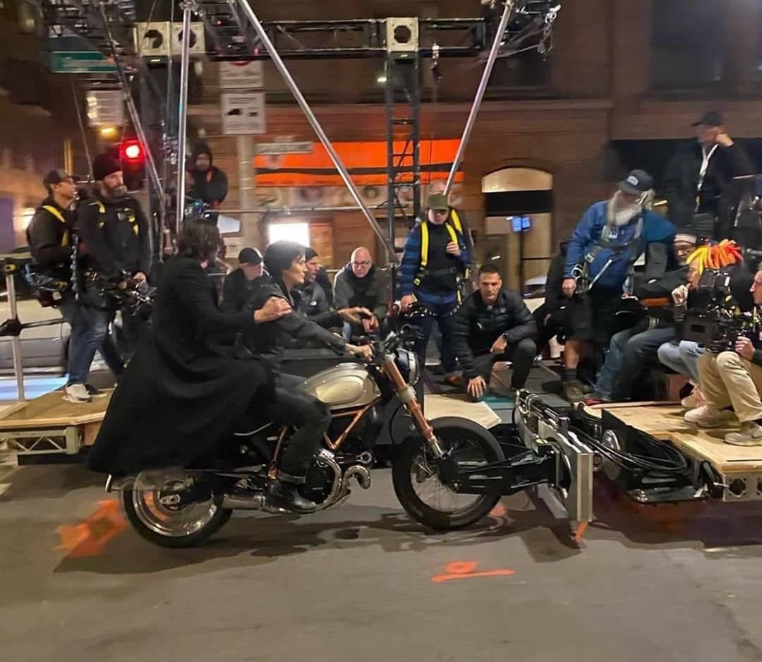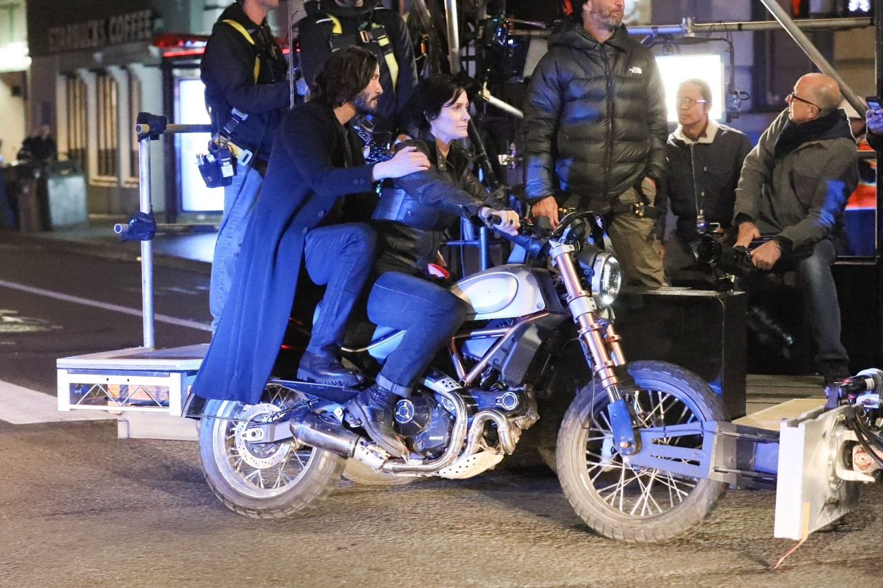 На фото Кіану і Керрі їдуть разом на мотоциклі. І всіх мучить лише одне питання: яким чином воскресла Трініті, яка загинула в третій частині? Але наразі сюжет фільму тримають у таємниці.