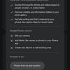 Другий компонент надає можливість запитувати важливі дані, знайдені на фотографіях, такі як теми свят, страви, номери документів і ключові моменти поїздок. Результати пошуку відображаються в застосунку Google Фото, де можна переглянути додаткові дані.