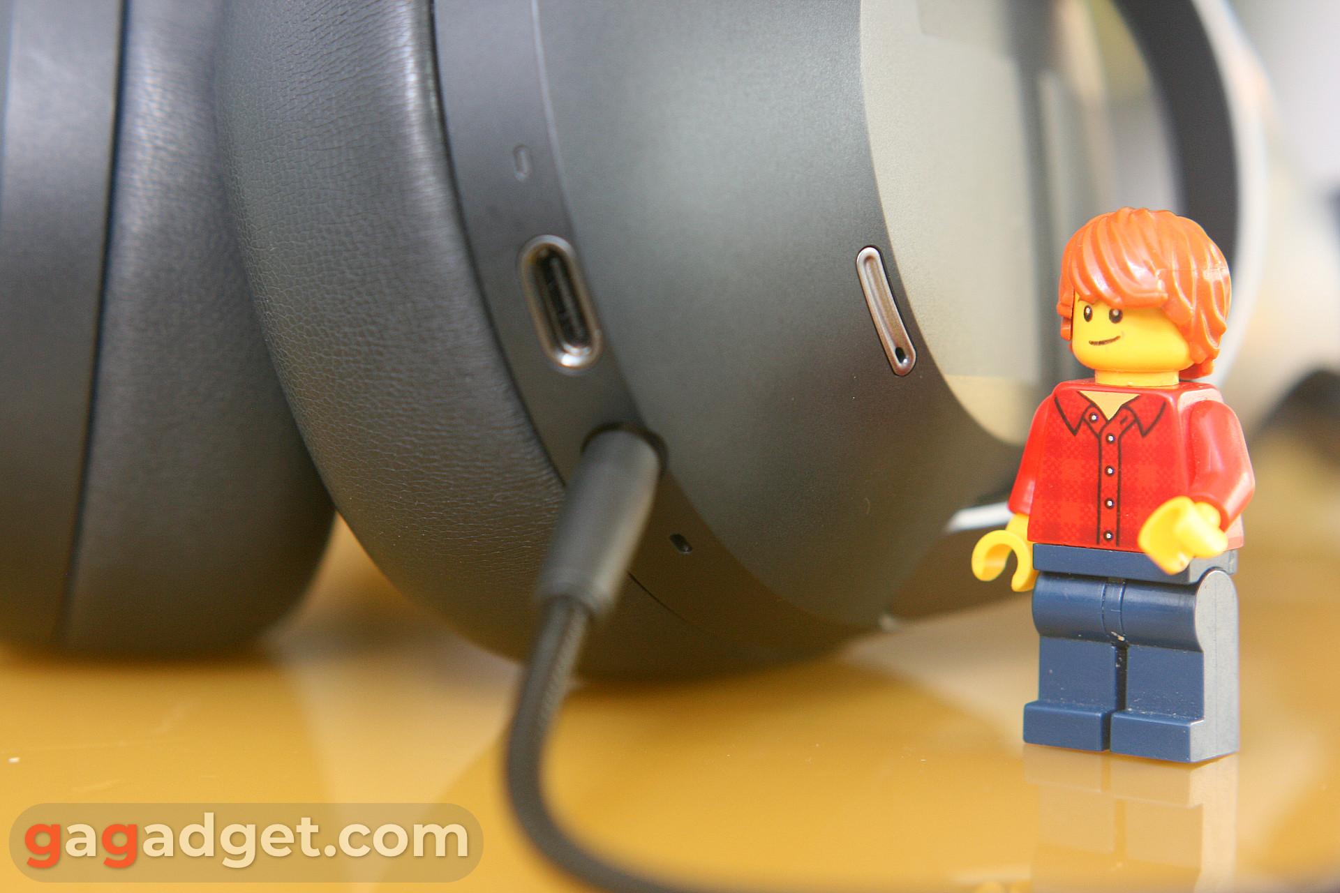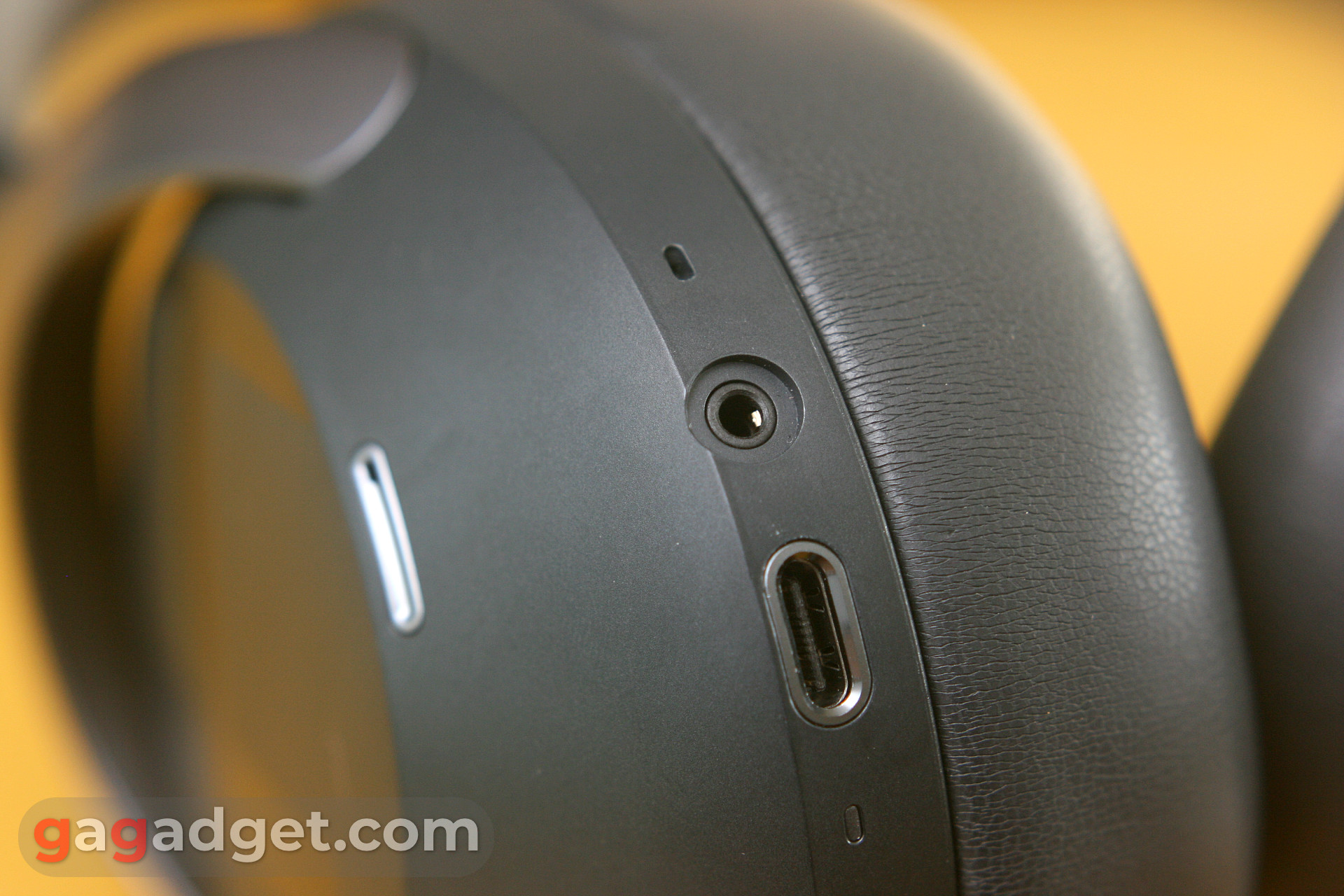 Цим же матеріалом вкрито амбушюри, на їхній внутрішній частині нанесено літери R і L для маркування правого і лівого боку. На зовнішній стороні видно зображення літери "Н", як і на інших моделях цієї серії. Усі роз'єми та органи управління зібрані на правій чаші. Це окремі кнопки ввімкнення і шумозаглушення, здвоєна гойдалка гучності, отвір для мікрофона, світлодіодний індикатор, порт USB-C і гніздо для підключення зовнішнього мікрофона.