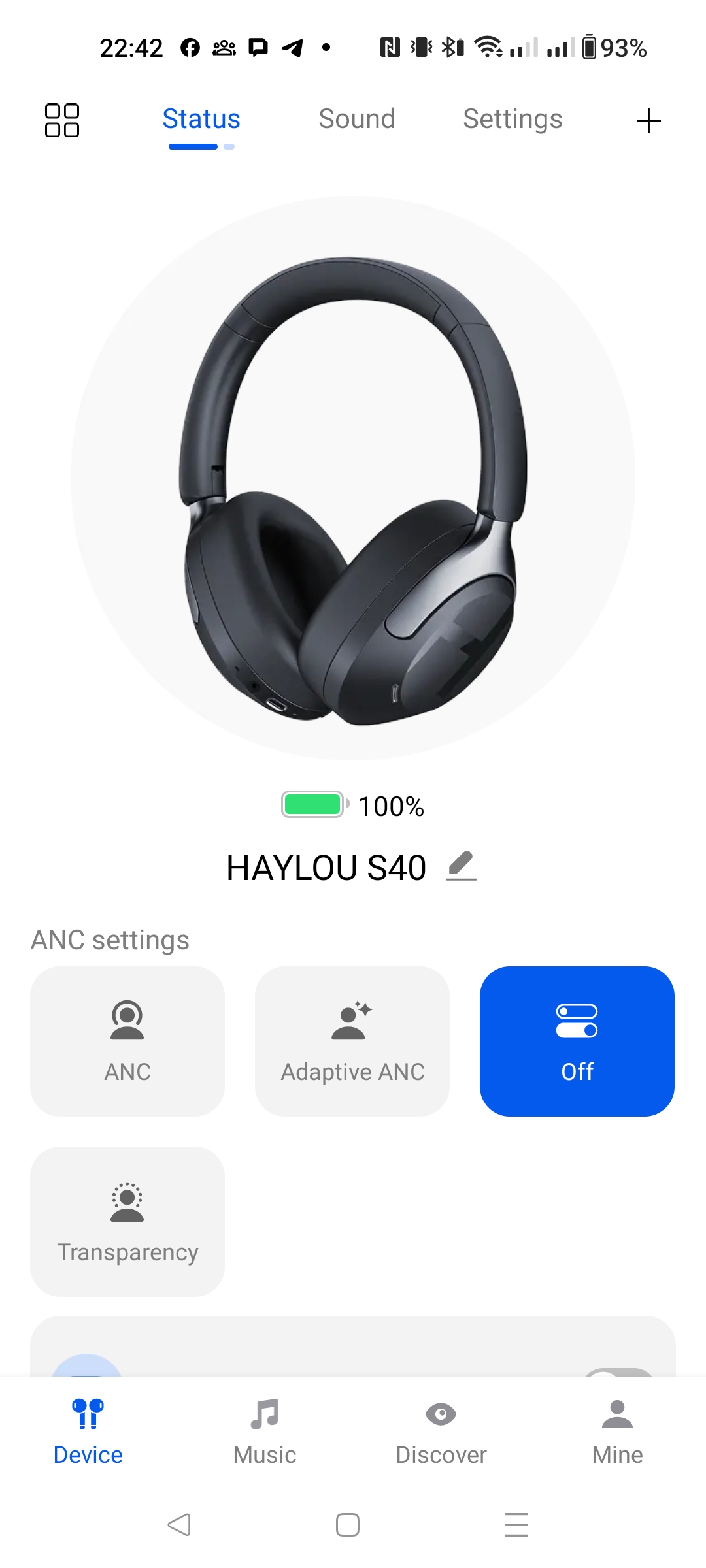 Haylou S40 ANC можна під'єднати і до двох джерел одночасно, проте за замовчуванням ця функція чомусь вимкнена, вперше з таким стикаюся. Щоб її активувати, доведеться завантажити мобільний додаток Haylou Sound і вже в ньому вибрати функцію Multipoint. Далі відключаємося від першого джерела звуку, навушники переходять у режим сполучення, підключаємося до другого джерела, а потім у налаштуваннях першого знову вмикаємо ці навушники. Вуаля, можна приймати дзвінки на одну гарнітуру з двох смартфонів! Два джерела, звісно, не мікшуватимуться в один звук, але перепідключати навушники щоразу не знадобиться.