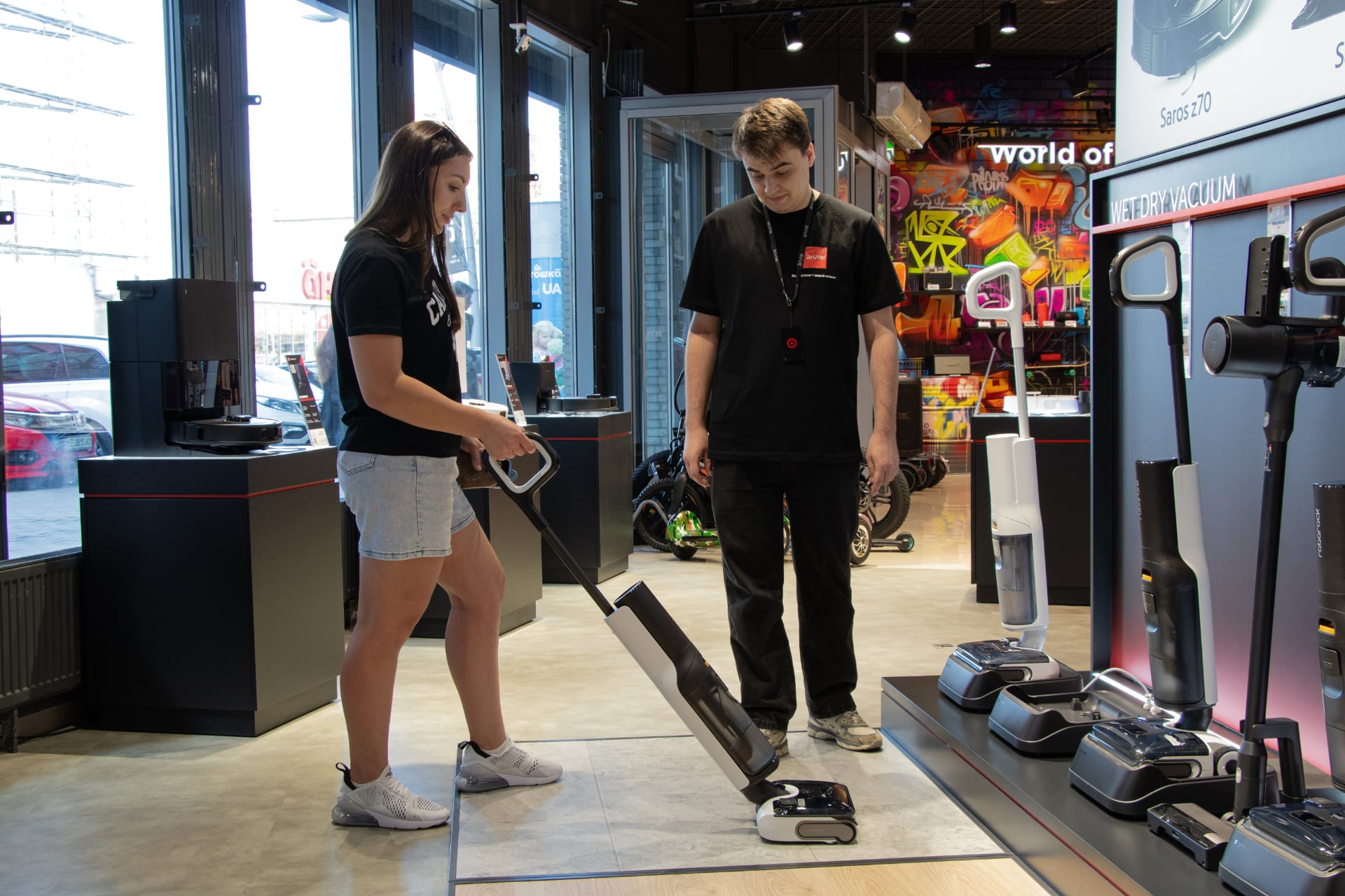 У шоурумі доступний повний модельний ряд роботів-пилососів, вертикальних моделей та аксесуарів. Спеціально облаштований демонстраційний майданчик дозволяє протестувати пристрої на різних типах покриттів і побачити їхню роботу в реальних умовах.