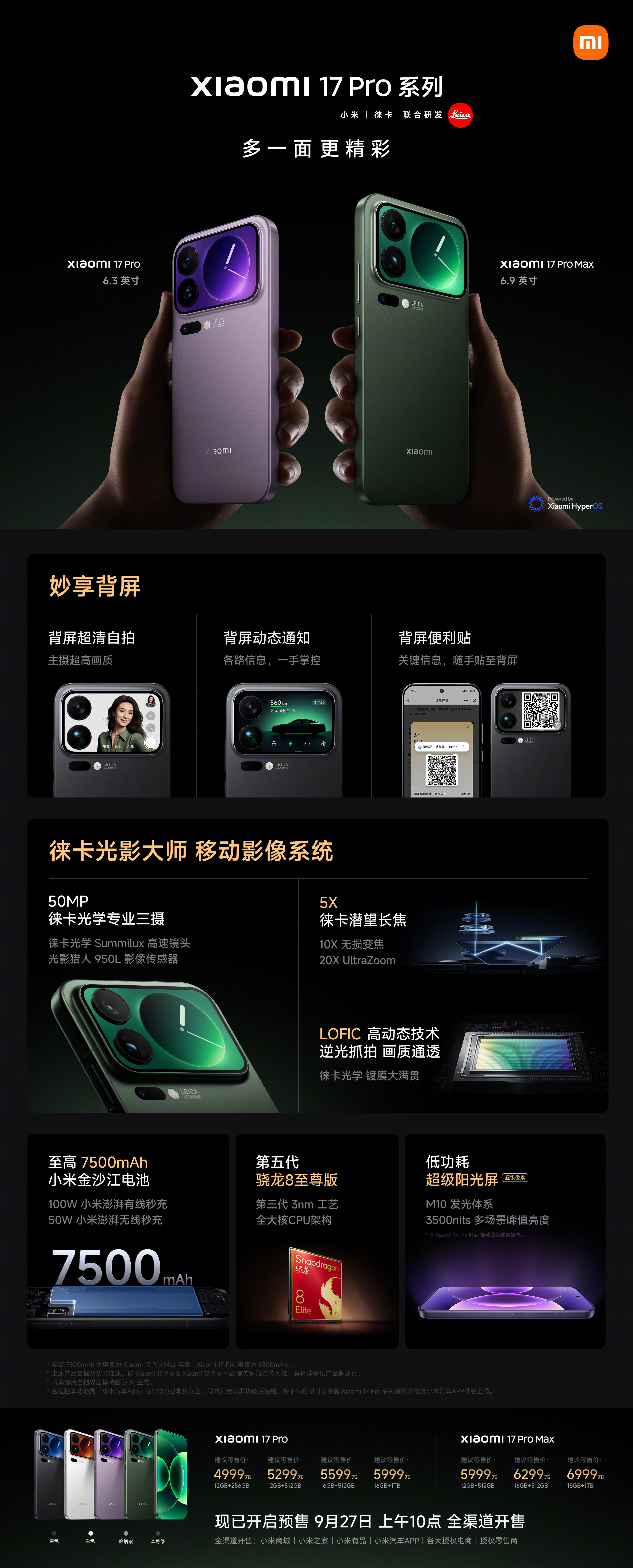 Xiaomi провела захід, на якому анонсувала 17-у лінійку флагманів: Xiaomi 17, Xiaomi 17 Pro і Xiaomi 17 Pro Max. Усі моделі отримали потужні процесори Snapdragon 8 Elite Gen 5 і величезні батареї, а Pro і Pro Max отримали додатковий екран на спинці і гарну телефотокамеру. Камери усіх моделей отримали технології Leica.