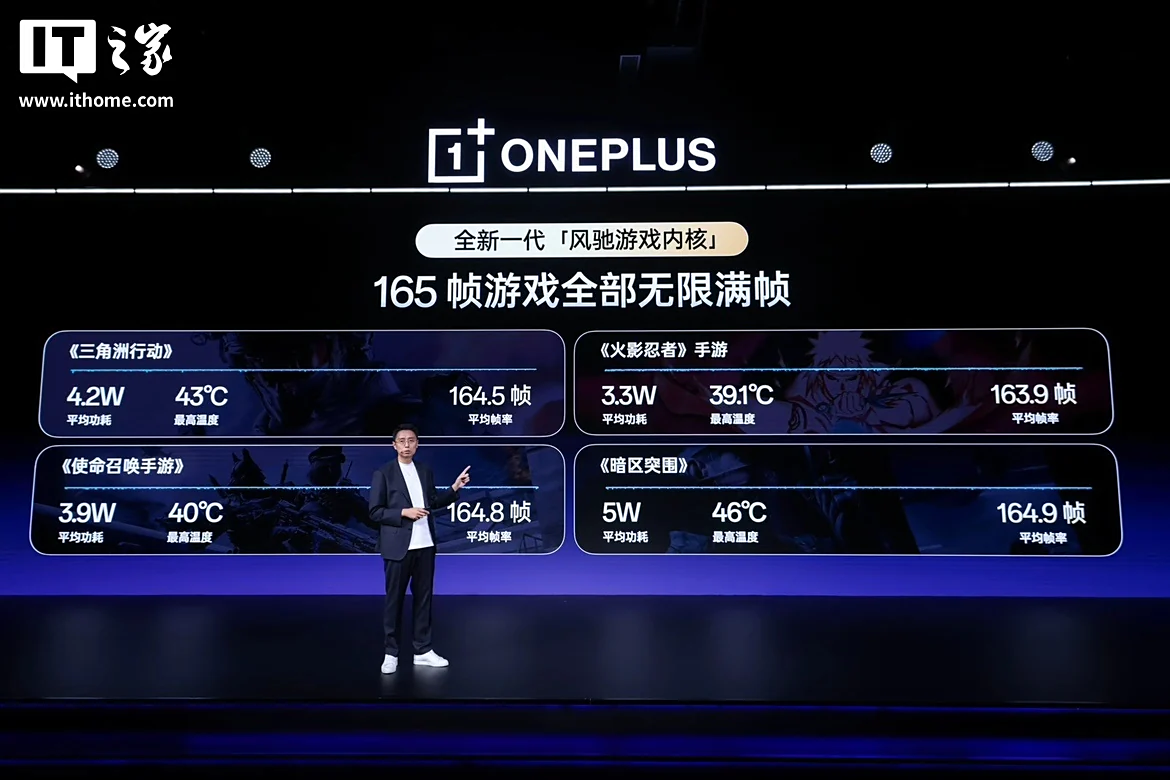OnePlus продемонстрували показники смартфона в п'яти оптимізованих іграх, серед яких Call of Duty Mobile, League of Legends Mobile, Genshin Impact та ін. За словами президента компанії, менша затримка у оновленні дисплея дозволить швидше реагувати на зміну обстановки у кіберспортивних іграх.