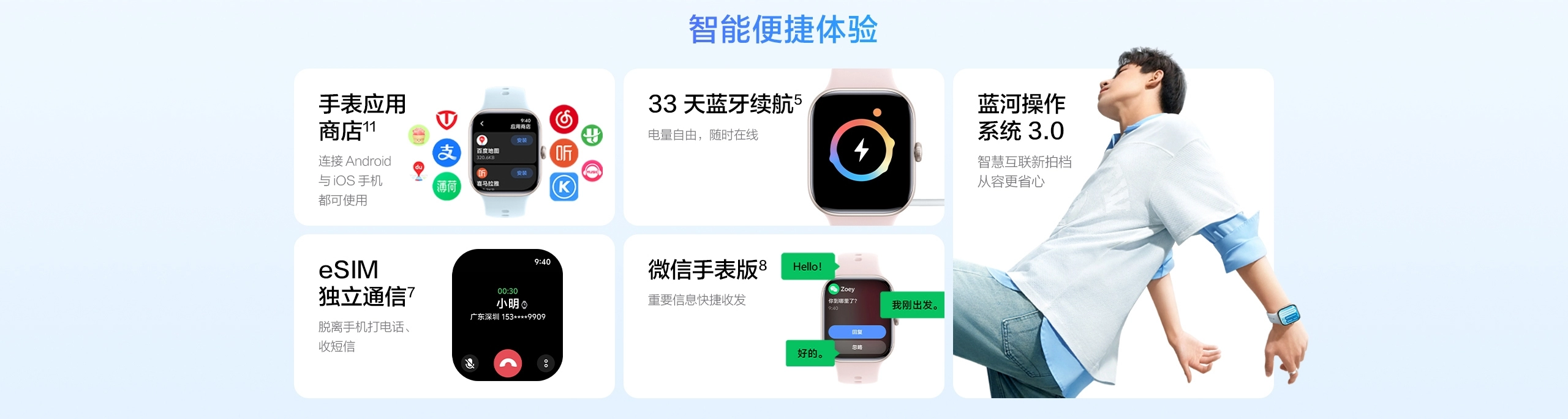 - Зв’язок: LTE через eSIM (в моделі з eSIM), Bluetooth 5.4, NFC, GPS / GLONASS / Galileo / BeiDou; динамік і мікрофон — для здійснення дзвінків прямо з годинника