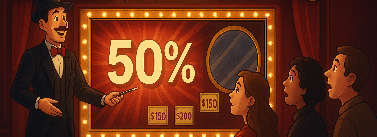- перед "розпродажем" підвищити ціну на товар, і показати її закресленою на ціннику, наче цей ноутбук коштував 59999, а зараз продається всього лише за 29999 гривень.