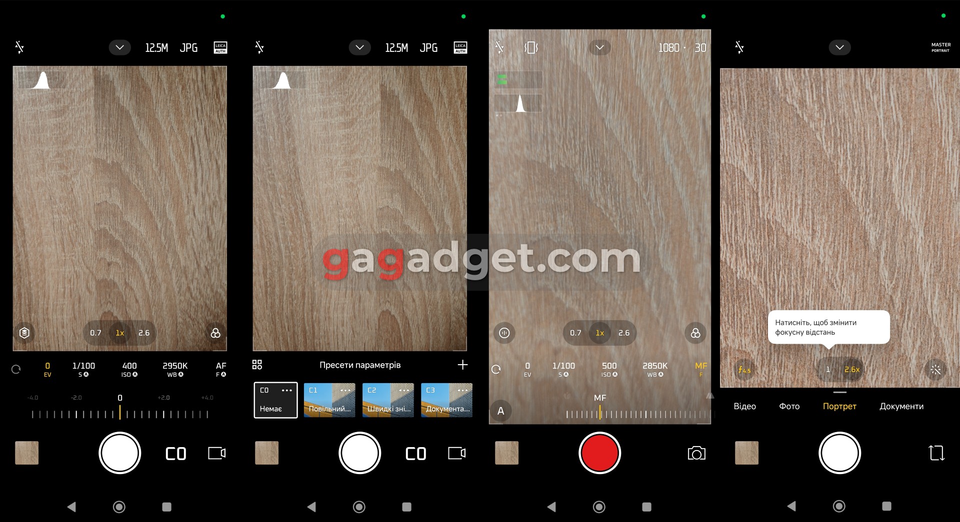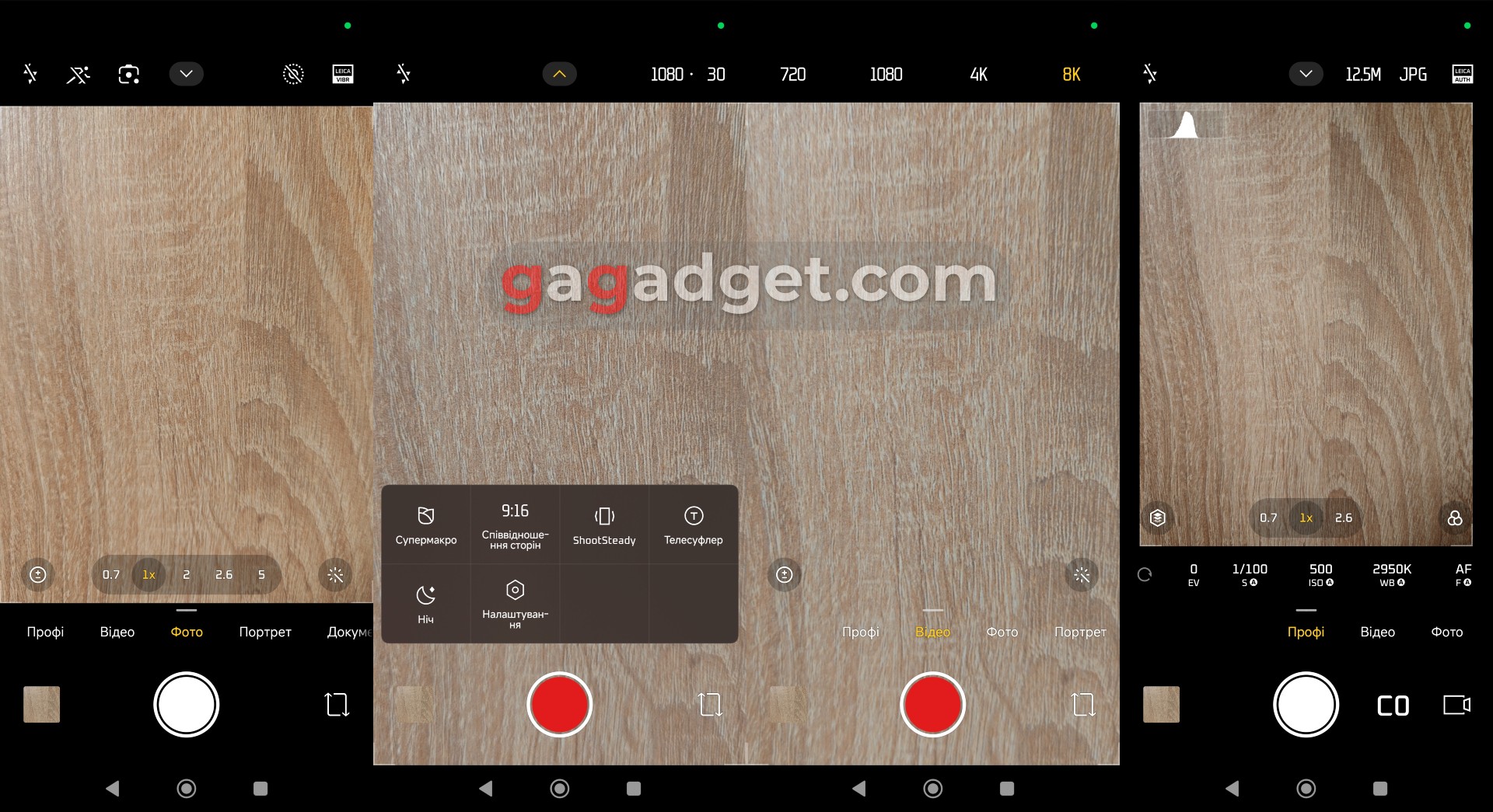 Раз уж ми про налаштування, то давайте зачепимо інтерфейс камери. Він цілком звичний, хоча може знадобитися трохи часу на те, щоб ознайомитися з усіма можливостями. Окремо слід відзначити професійний режим камери. Він дісно на рівень вищий, ніж його аналоги на більшості сучасних смартфонів. Зокрема, він передбачає не лише фото- а й відеозйомку. Причому з масою професійних фішок: ручне керування фокусом (навіть у відео), зйомка в LOG для подальшої кольорокорекції, гістограма в реальному часі, індикатори рівня двох каналів аудіо і навіть аудіомоніторинг через підключені дротові USB-навушники (перевірив, реально працює). А от чого не вдалося знайти, так це можливості запису відео на зовнішній носій. Якщо така потреба з'явиться, доведеться користуватися сторонніми застосунками. Фотознімки можна зберігати як у JPG, так і у RAW чи URAW, є HDR, режим «Динамічні знімки» (аналог Live Photo на iPhone), два фірмові алгоритми обробки зображення Leica (Authentic та Vibrant), і ще купа ручних налаштувань.