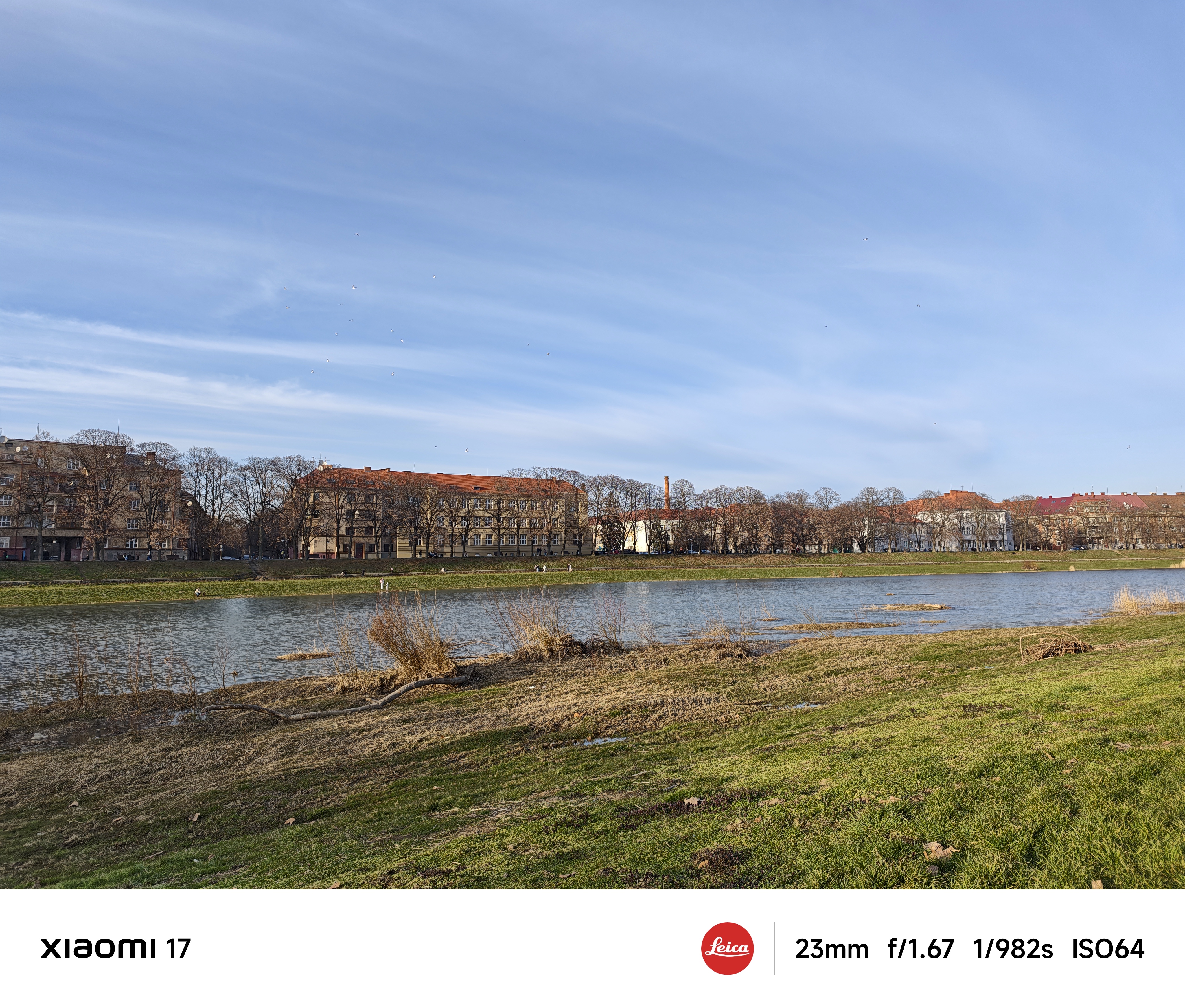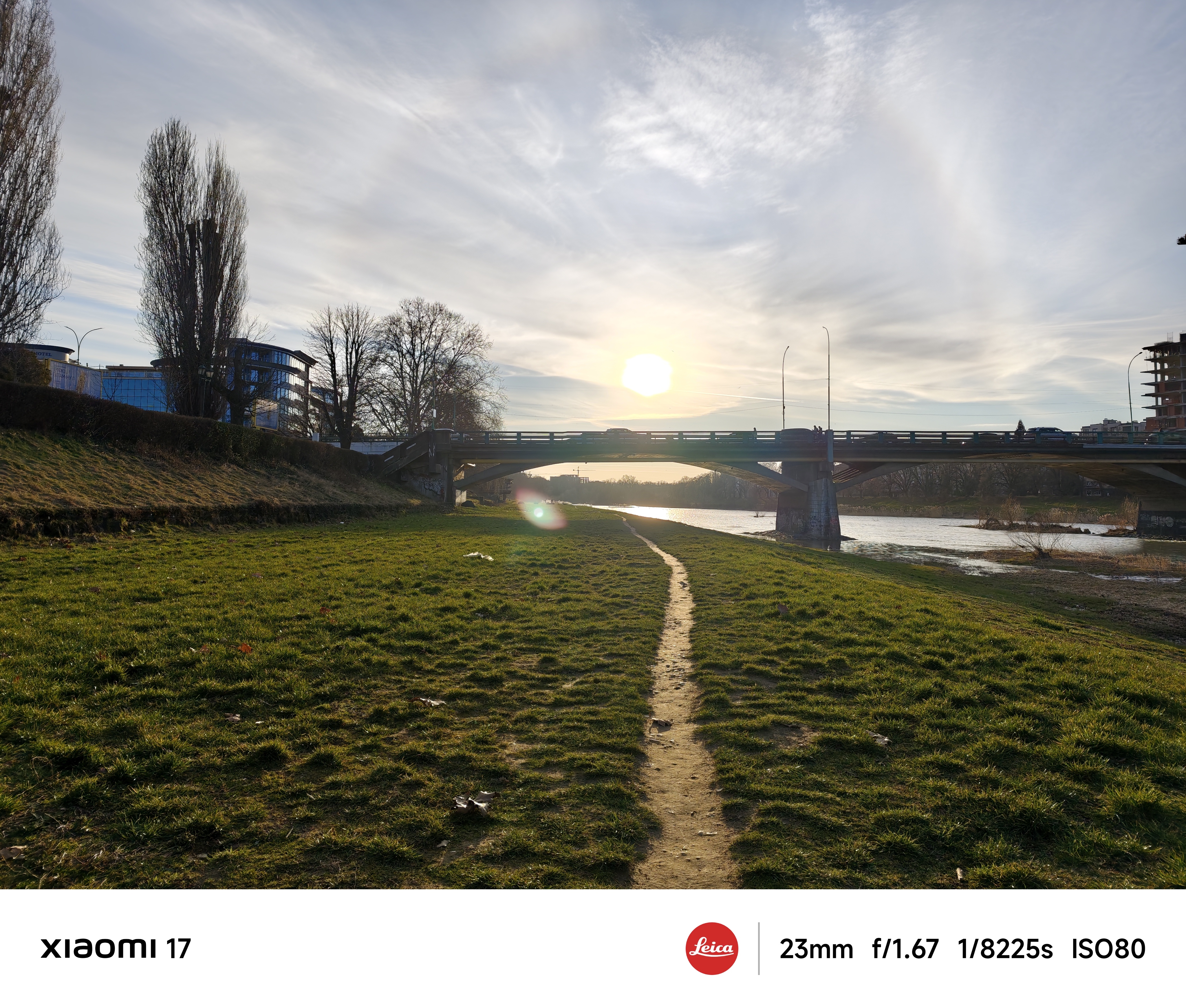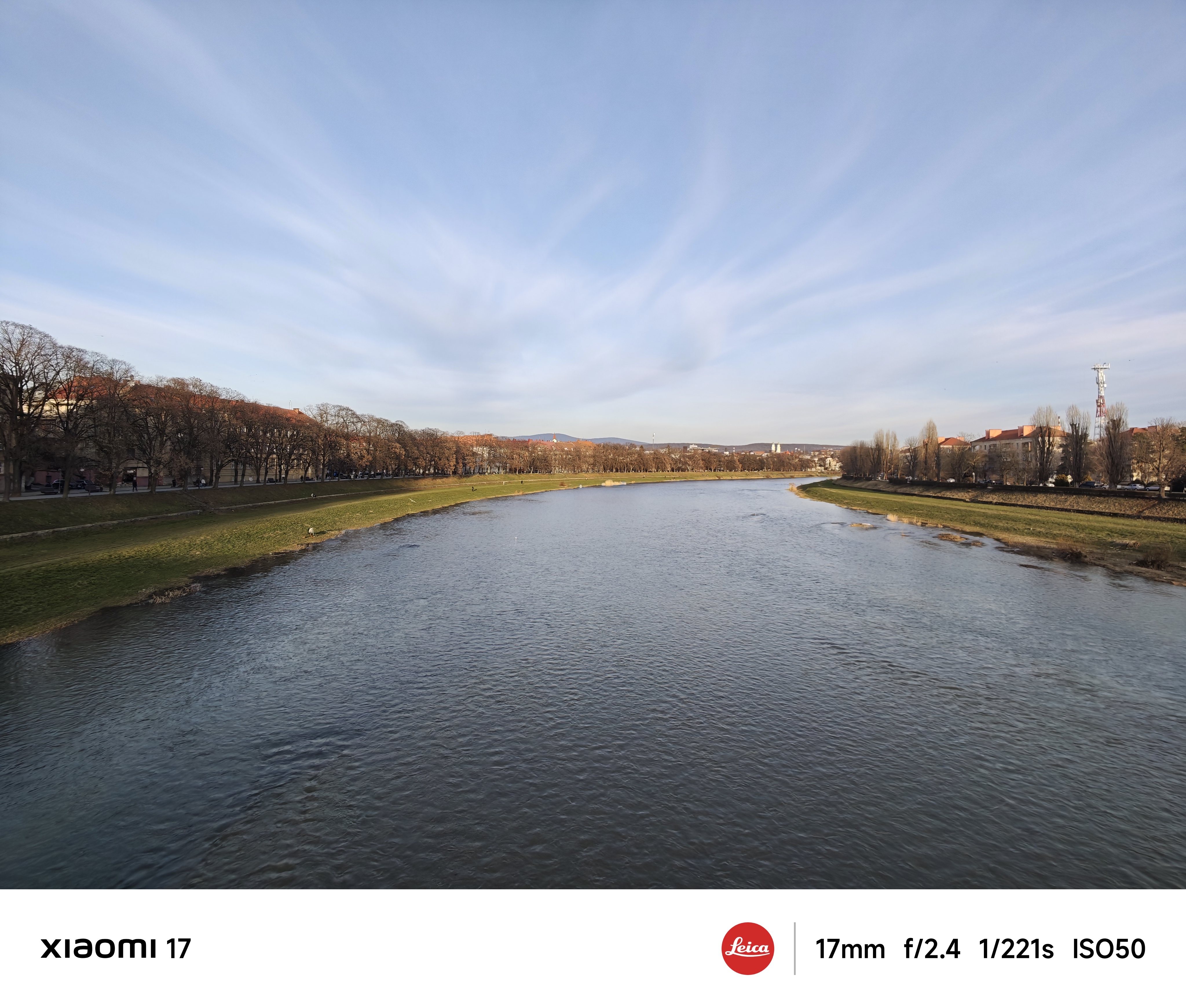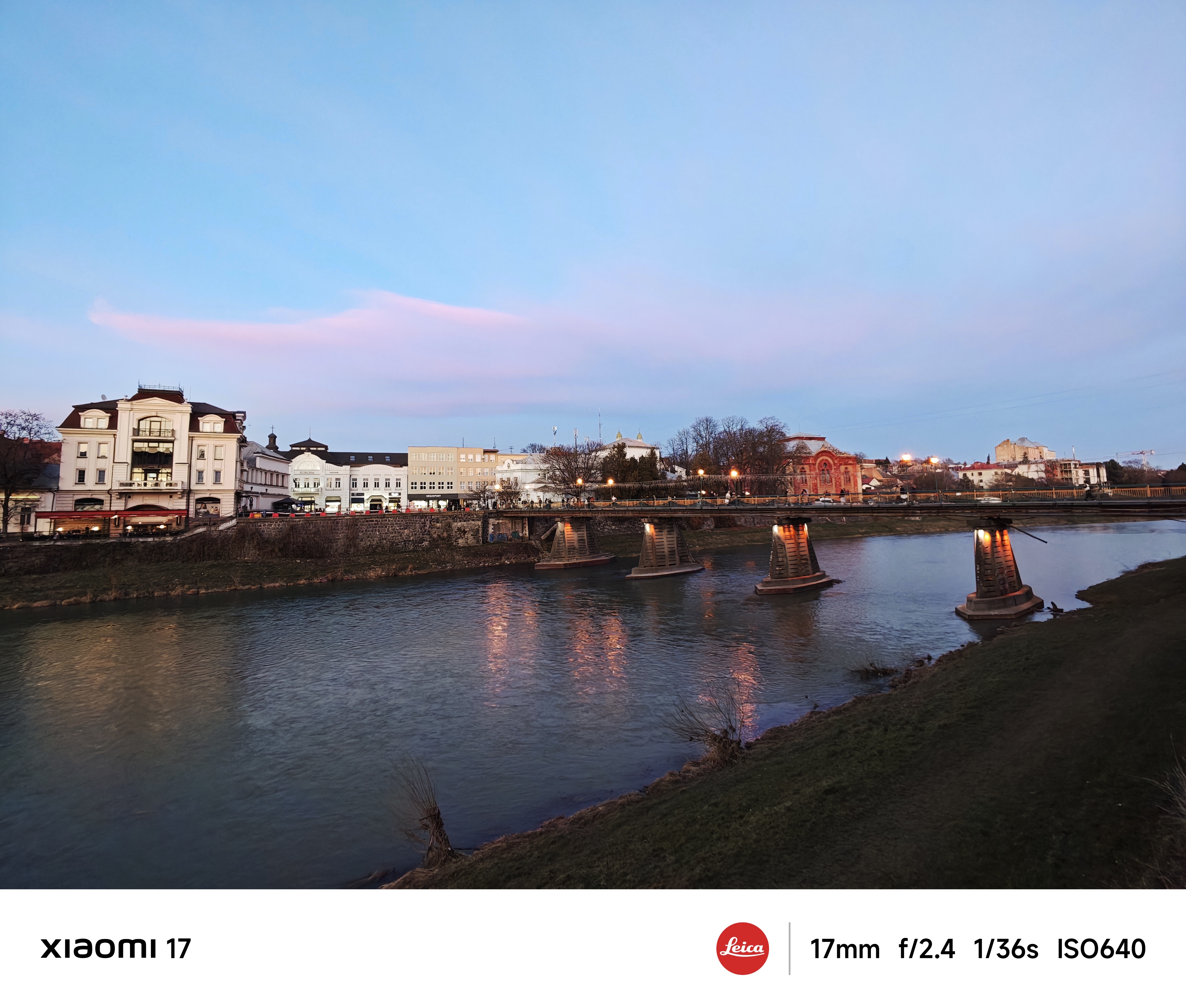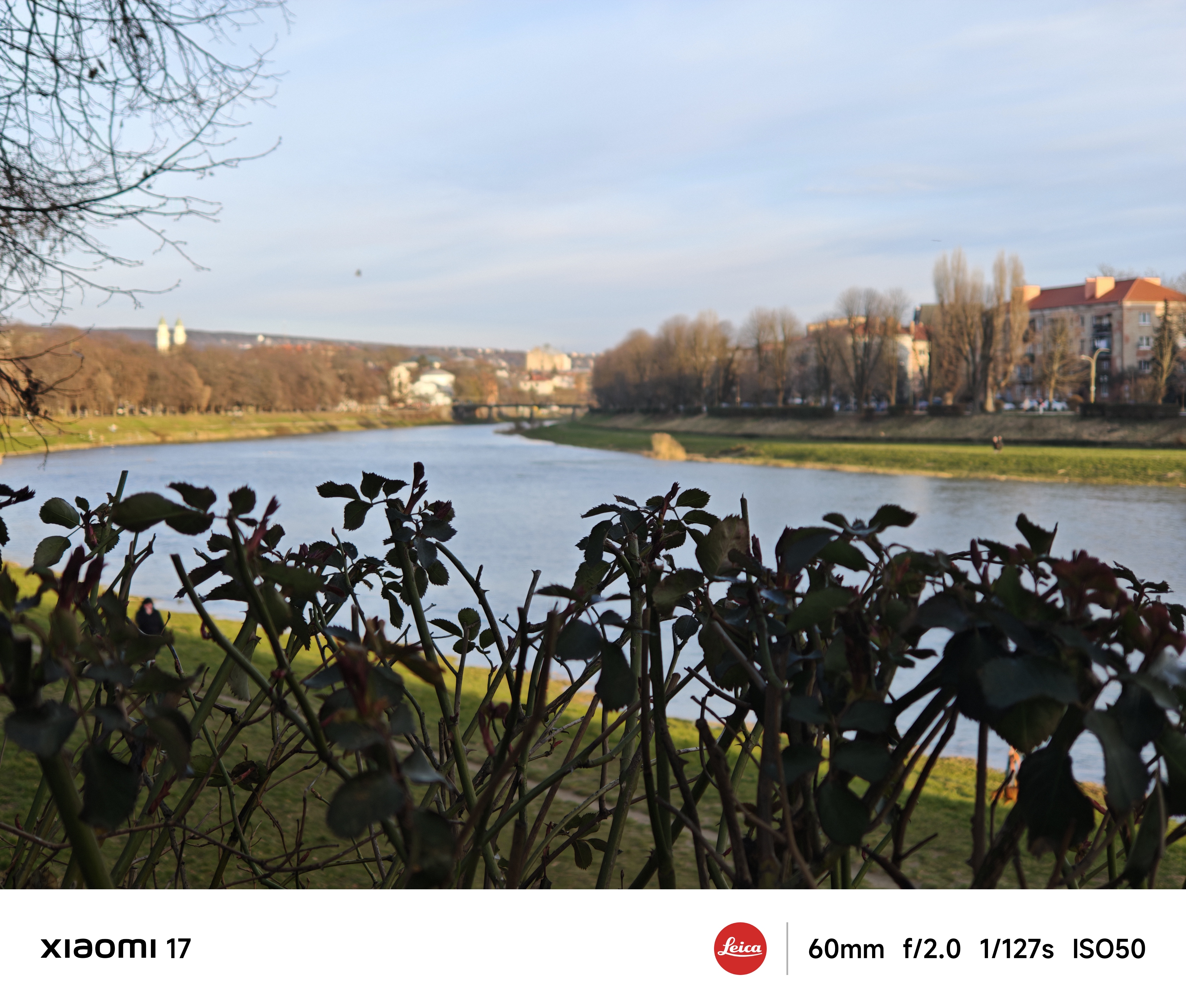 Основна камера використовує оптику Leica Summilux з високою світлосилою f/1.67 і чудово знімає в умовах слабкого освітлення. Еквівалентна фокусна відстань лінзи складає 23 мм, це типова ширококутна камера загального призначення. Всі тестові фото нижче наведені без обробки, зйомка в автоматичному режимі з рук. Щоб показати параметри зйомки, я спеціально увімкнув їх відображення на фірмовій стрічці внизу кадру.