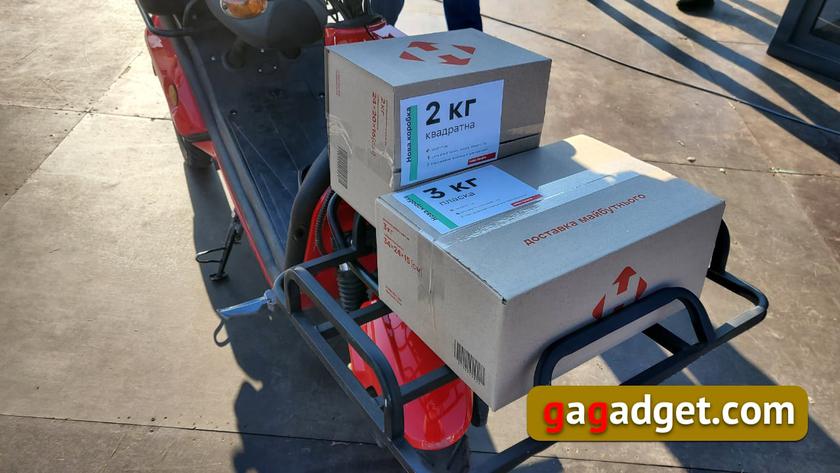 Це одномісний електромобіль китайського виробництва, здатний нести пару десятків уніфікованих контейнерів Нової пошти. На вигляд такий контейнер нагадує рюкзаки служб доставки, які використовують Glovo або Rocket. У нього щільні стінки (щось середнє між картоном і фанерою). І, звичайно, річ йде не про великогабаритну доставку.