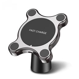 Доступний бездротовий варіант, який буде корисним для тих, хто хоче встановити модель в автомобілі. Зарядка обладнана досить міцним кріпленням, основа липка, по кутах знаходяться магніти. Сама платформа може обертатися навколо осі, підтримується функція швидкого заряджання. По периметру встановлено світлодіодні індикатори синього кольору. Користувачі позитивно оцінюють, що продавець склав список сумісних смартфонів. У комплекті йдуть інструкція, шнур для прикурювача та магнітна наклейка. Якщо говорити про недоліки, пристрій часто дає збій при використанні функції швидкої зарядки.