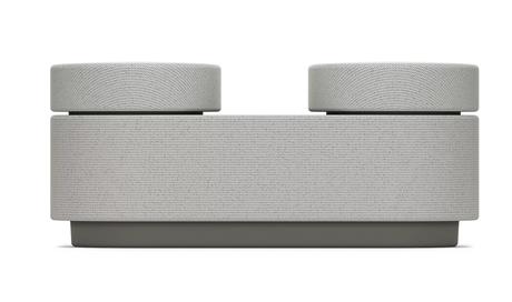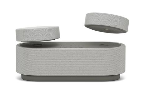 Це бездротова компактна система, що складається з трьох колонок: однієї основної та двох менших. Пару маленьких динаміків необхідно встановити в будь-якому зручному місці з боків, у результаті чого ви отримаєте об'ємне 360-градусне звучання. Маленькі колонки автоматично синхронізуються з основним блоком під час від'єднання і заряджаються після стикування з ним.