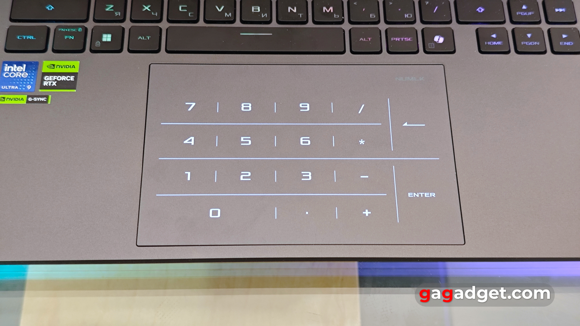 Ноутбук отримав великий скляний тачпад. Розміри складають 150.3x98.8 мм. Він має чудову чутливість, а пальці легко ковзають по поверхні. Звісно, для ігор доведеться підключити мишку чи геймпад, але для усього іншого тачпада вистачить. Компанія вирішила компенсувати відсутність додаткового цифрового блока своїм давно перевіреним способом під назвою Numberpad. Після натиснення на сенсорну кнопку NumLk тачпад перетворюється на сенсорний цифровий блок.