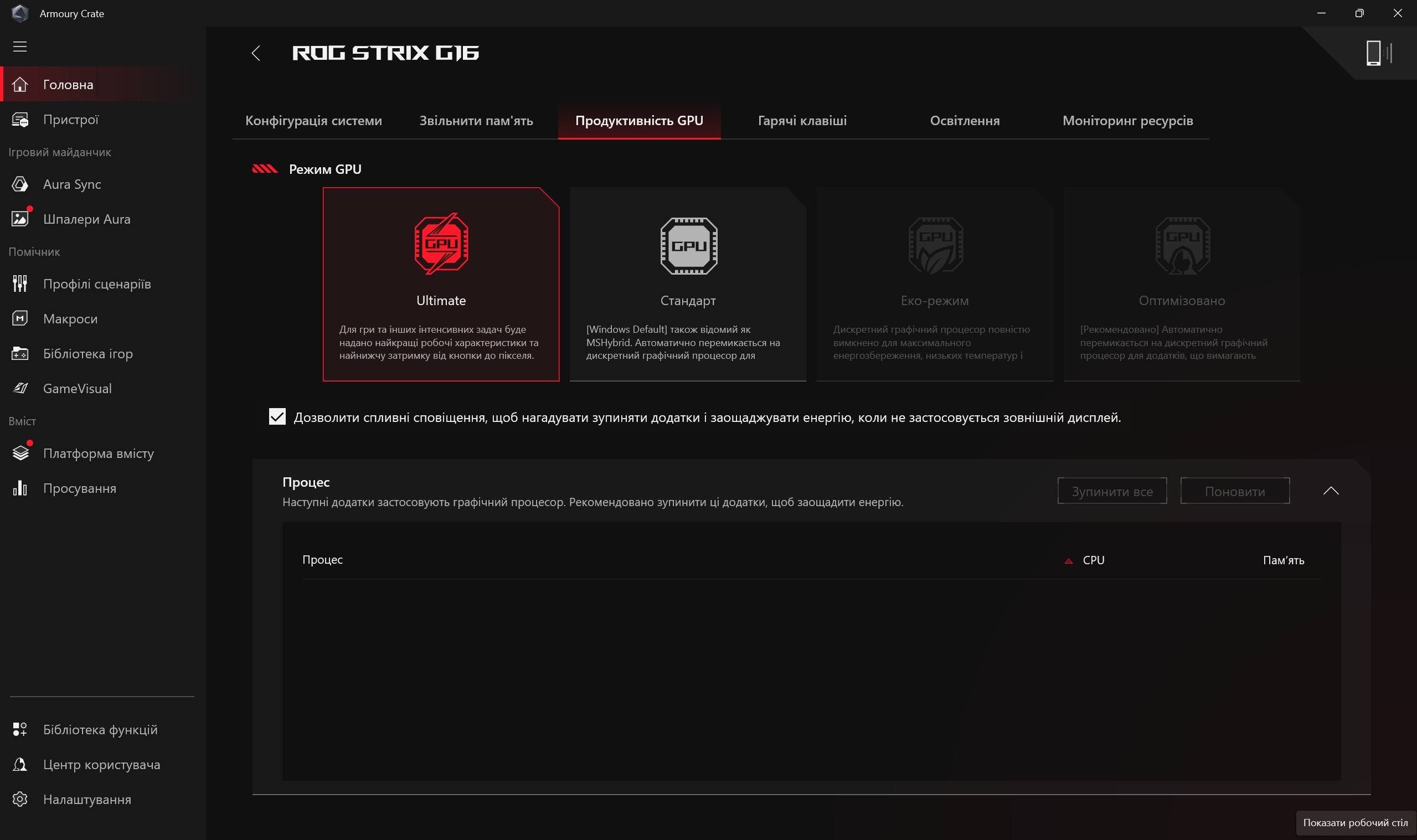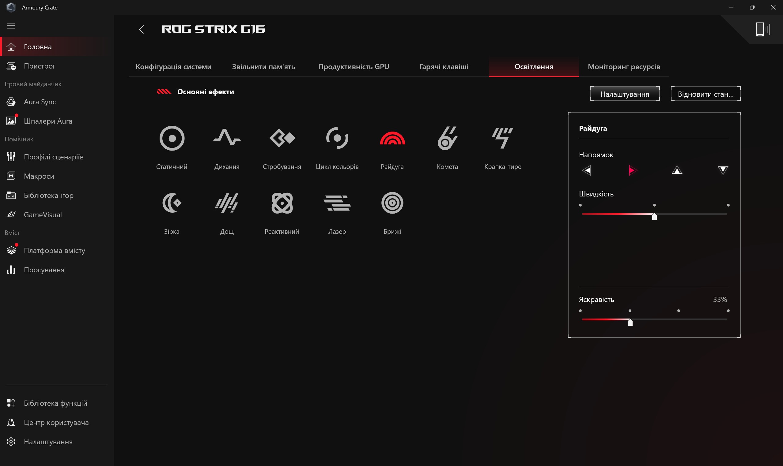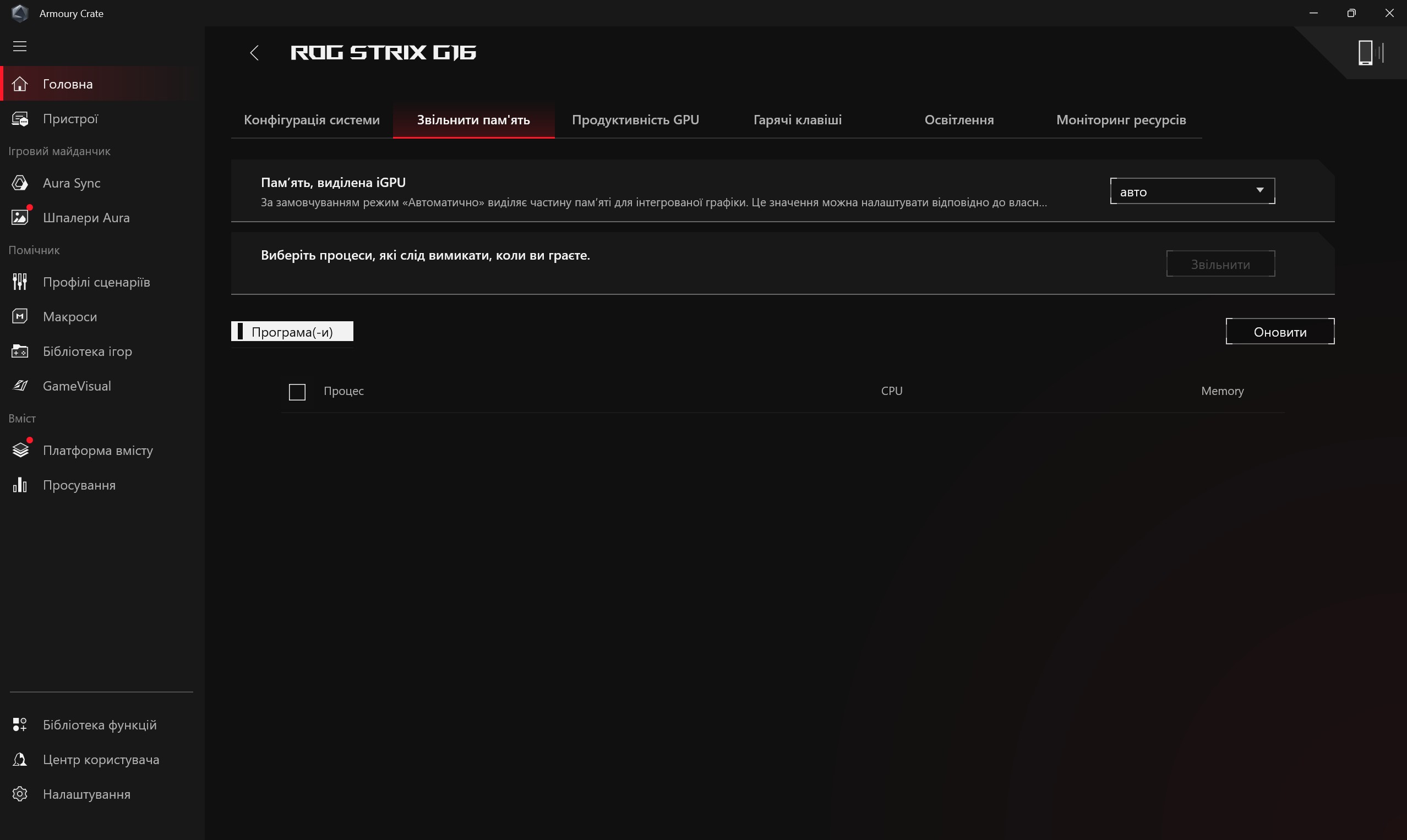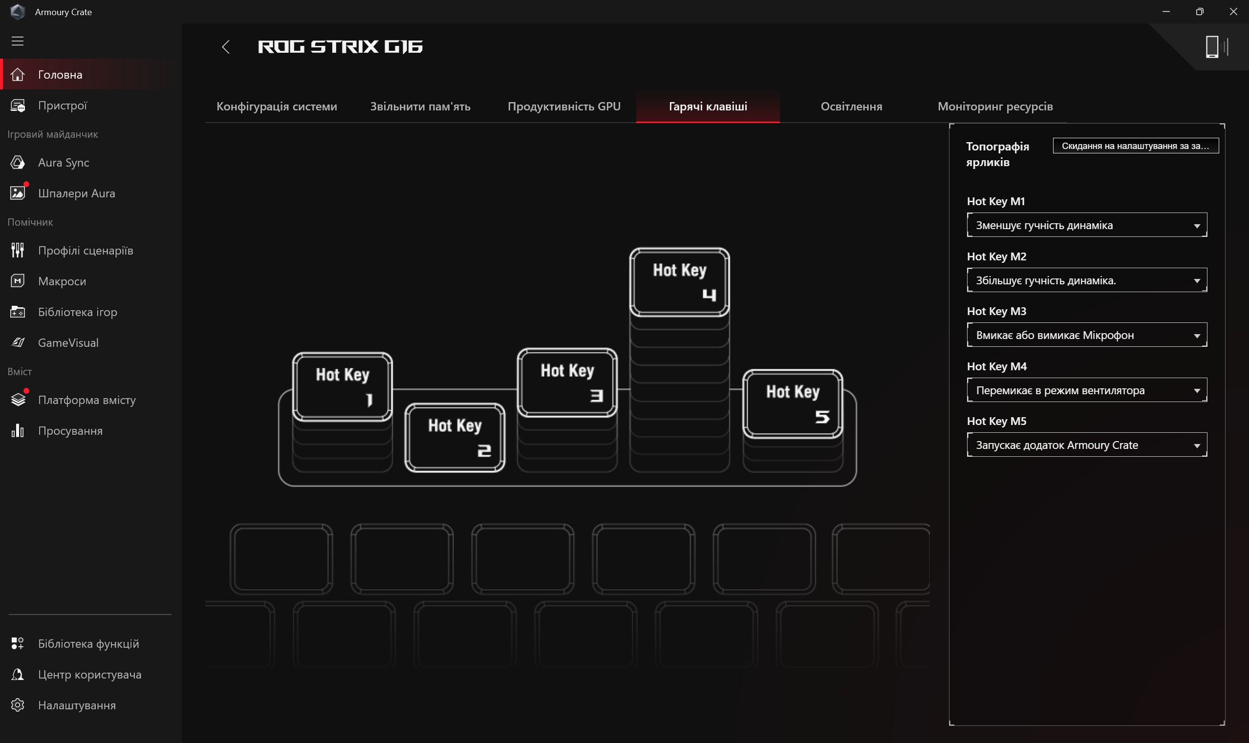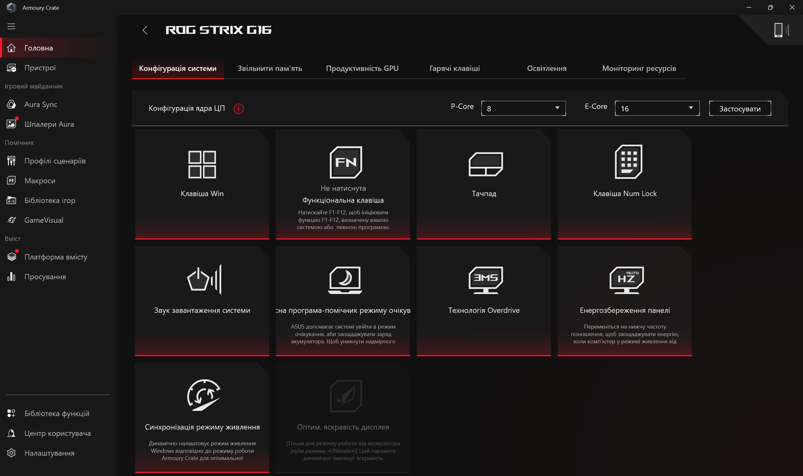 Програмне забезпечення ASUS ROG Strix G16 (2025)