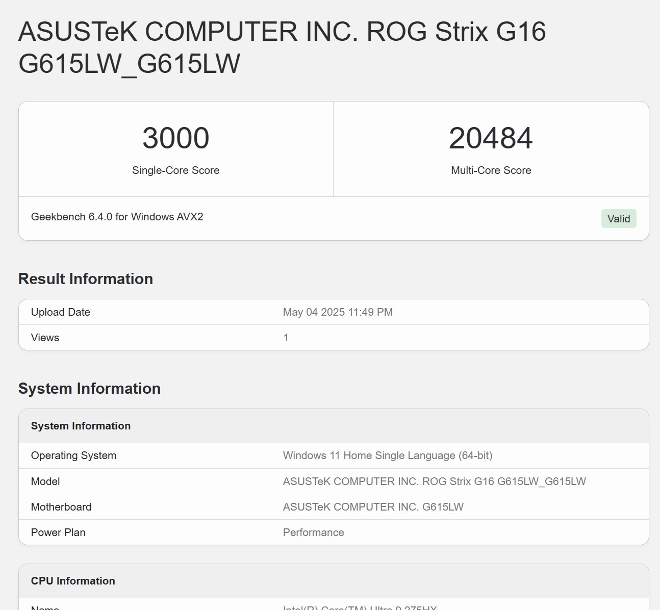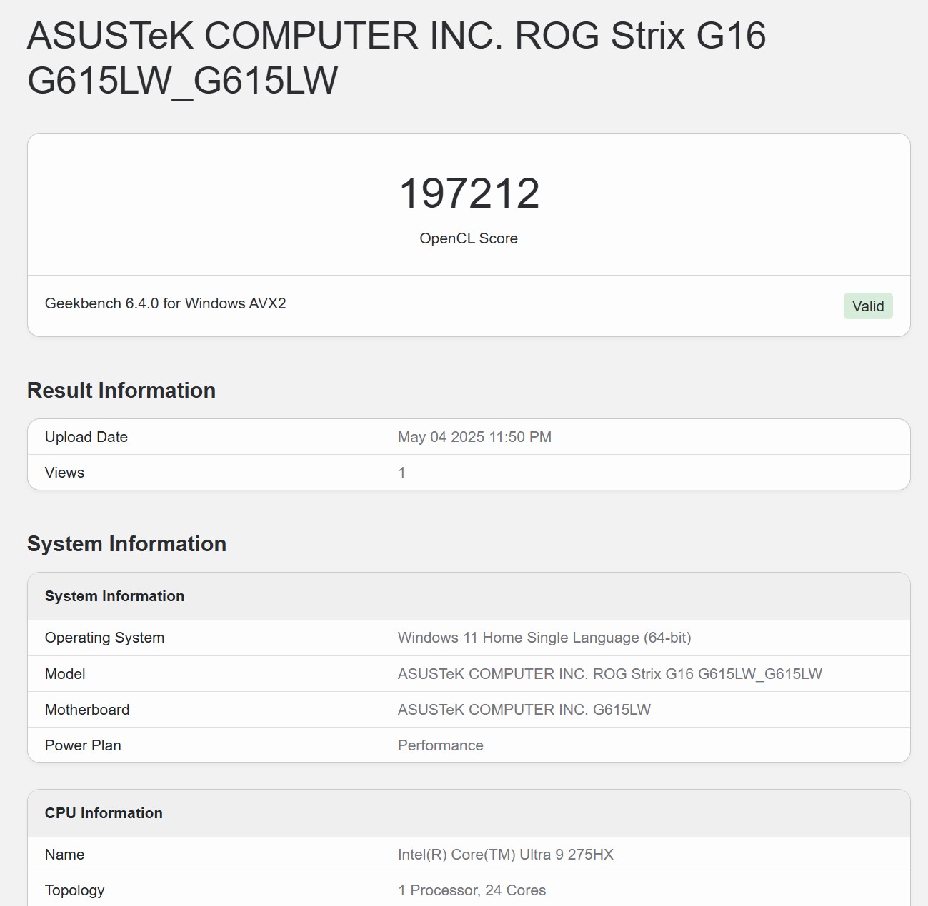 Синтетичні тести продуктивності ASUS ROG Strix G16 (2025)