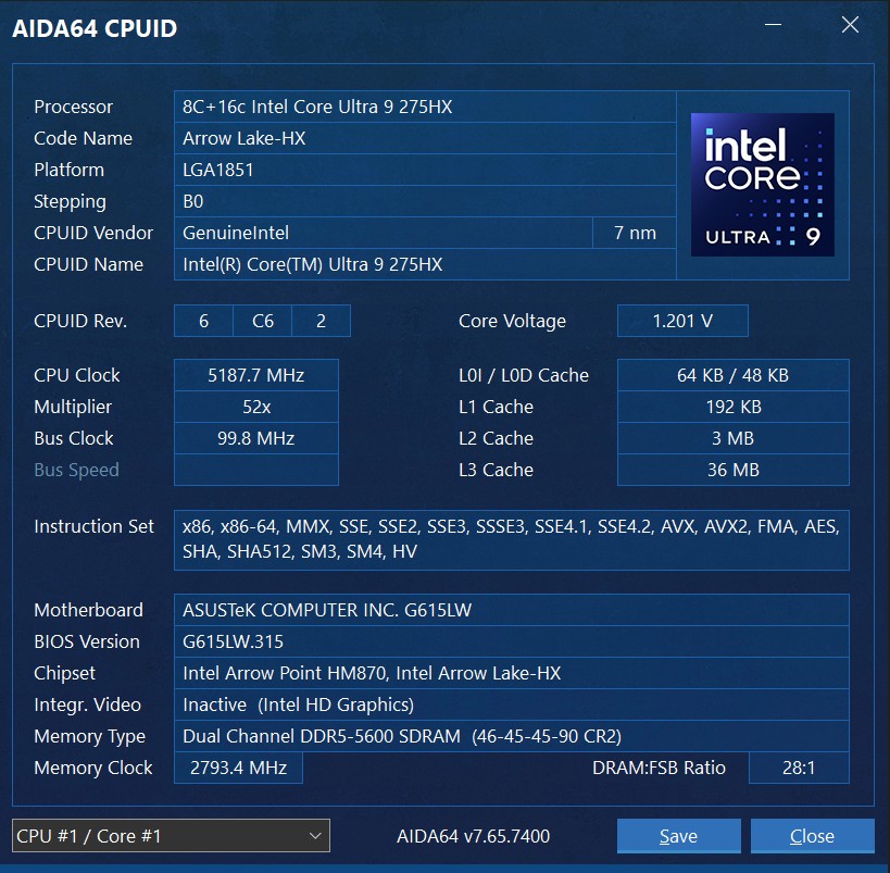 | Процесор | Intel Core Ultra 9 185H (до 5.9 ГГц), 24 (8+16) ядер, 24 потоки, (Arrow Lake) |