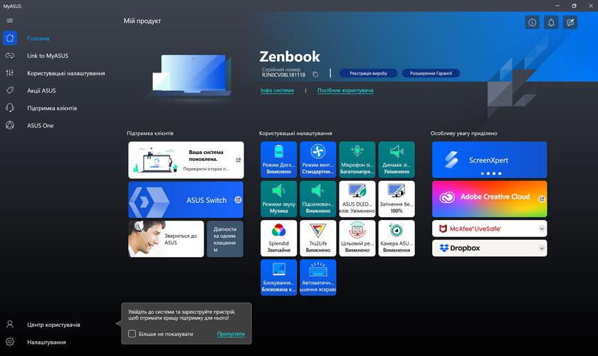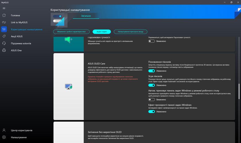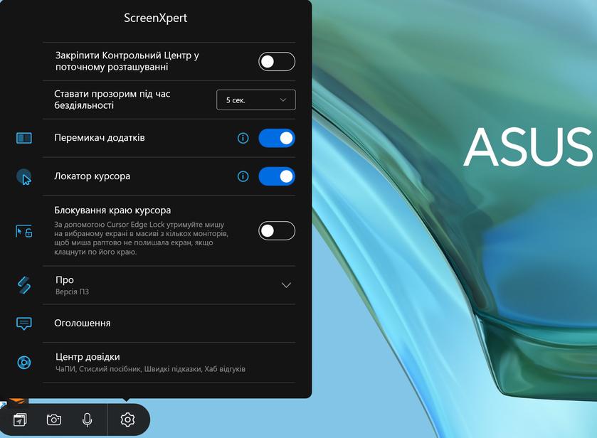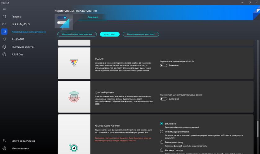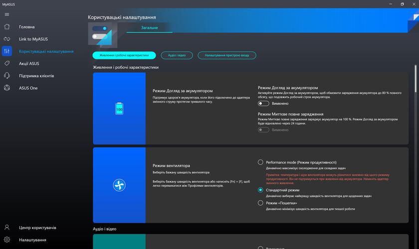 З комплектного програмного забезпечення є основний застосунок MyASUS, про який ми вже безліч раз розповідали в оглядах ноутбуків компанії: