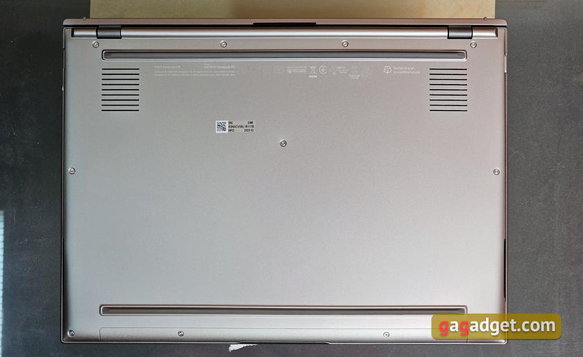 Знизу нічого особливого чи цікавого. Вентиляційні отвори над двома вентиляторами охолодження та широкі гумові вставки майже на всю ширину ноутбука.