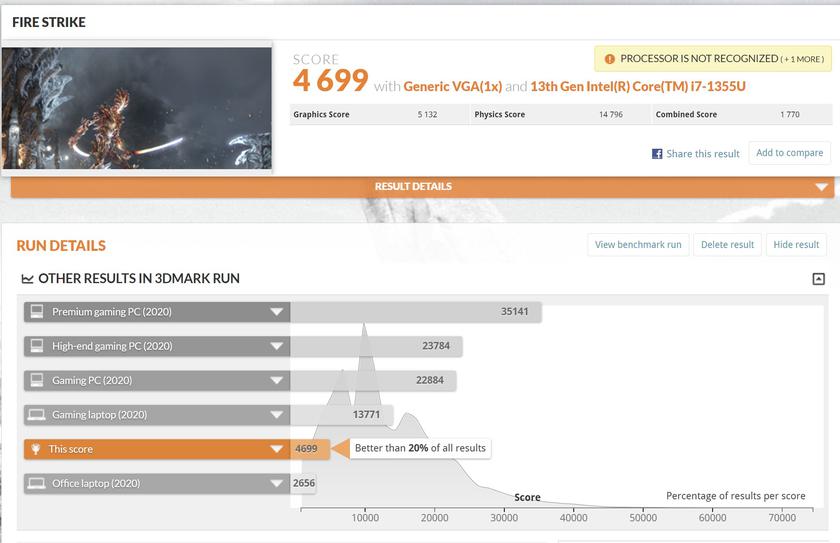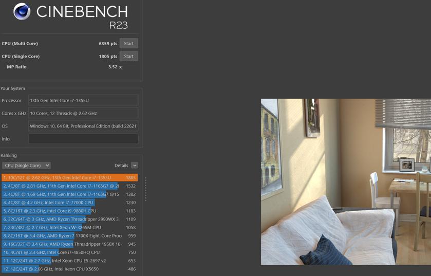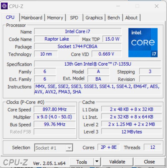 | Процесор | Intel Core i7-1355U (Raptor Lake, Intel 7), 10 ядер (2P+8E), 12 потоків, 1.7-5.0 ГГц |