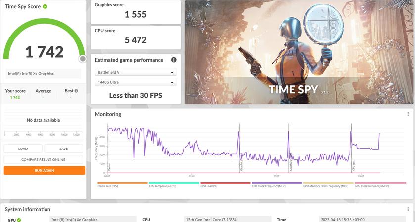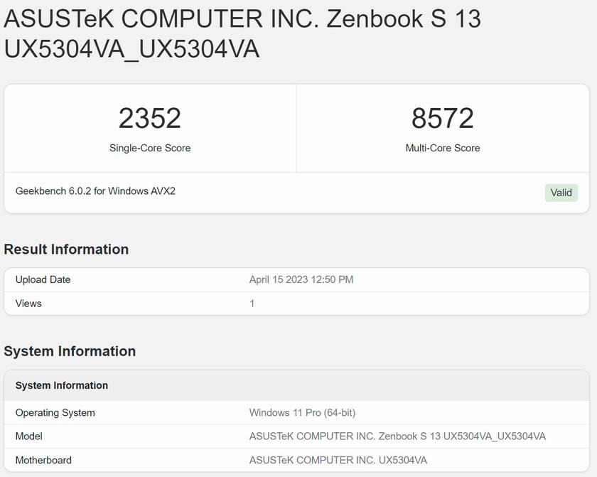 ASUS Zenbook S 13 OLED (UX5304V) — це ультрапортативне рішення для роботи з документами, браузером та іншими не дуже вибагливими задачами в дорозі. Тож продуктивність цілком відповідна. Маємо досить потужний (як для свого класу) процесор та не дуже продуктивну графічну підсистему. Втім, її цілком достатньо і для базової обробки фотографій чи відео.