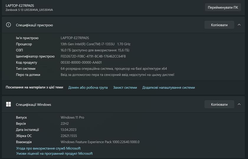 | Операційна система | 64-розрядна Microsoft Windows 11 Pro |