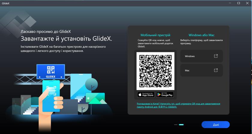 Та GlideX для швидкого підключення смартфона, перенесення даних та використання у якості додаткового дисплея: