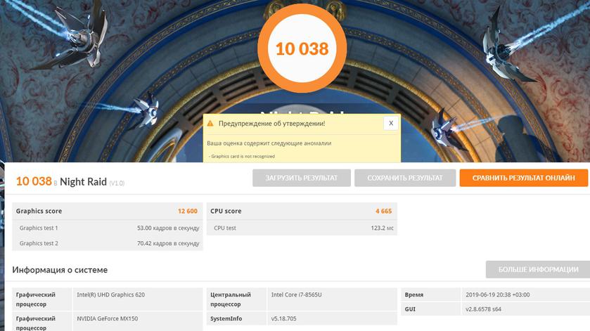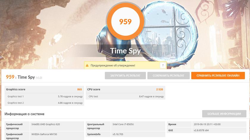 Результати в тестах продуктивності цілком очікувані і сумірні з ASUS ZenBook 13 UX333FN з аналогічним процесором і відеокартою. У PCmark ASUS ZenBook S13 трохи випереджає вищезгаданий ZenBook 13, в графічних тестах - зовсім небагато відстає. В межах допустимої похибки: