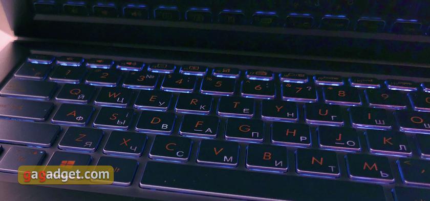 Розмір кнопок і межкнопкові відстані стандартні, хід кнопок - 1.4 мм, хід м'який і комфортний, але вельми інформативний. Є підсвічування з трьома рівнями яскравості: