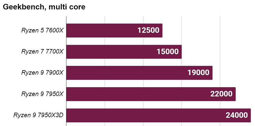 Ryzen 9 7950X і 7950X3D — найпотужніші зі споживчих процесорів AMD (ще швидші тільки напівсерверні Threadripper). Обидва мають 16 ядер і 32 потоки, а другий — збільшений до 128 МБ кеш, завдяки встановленню додаткового 3D-чиплета. Як результат, 7950X3D б'є всі можливі рекорди як в іграх, особливо процесорозалежних кіберспортивних, так і в професійному ПЗ. А найбільш корисні 32 потоки для так званих віртуальних машин, тобто кілька програмних комп'ютерів на одному фізичному.