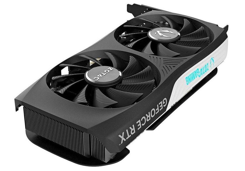 Гонконзька компанія Zotac вже майже 20 років спеціалізується на відеокартах GeForce, а також міні-ПК на їхній основі. Тому її продукція заслужено вважається однією з найнадійніших. Система охолодження Twin Edge складається з двох вентиляторів і радіатора завтовшки трохи більше двох слотів розширення. При низькому навантаженні на відеокарту пропелери повністю зупиняються за технологією Freeze Fan Stop для мінімізації шуму, зносу і запилення. Передбачено металевий бекплейт і підсвічування Spectra RGB. Фірмова утиліта Zotac FireStorm призначена для ручного оверклокінгу або навпаки андервольтингу.