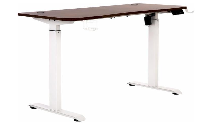 Стільниця має ламіноване покриття, пропонується три кольори на вибір: білий, чорний або коричневий. Декоративного підсвічування немає, зате є гачок для навушників і лоток для чашки або склянки, щоб випадково не перекинути. Органайзер для потайного укладання кабелів під столом, зрозуміло, теж присутній. Довжина столу збільшені 140 см, глибина стандартні 60 см, а висота регулюється від 75 до 115 см. Також в асортименті українського бренду Hator є більш доступний стіл Vast Essential без мотора і відповідно регулювання висоти.