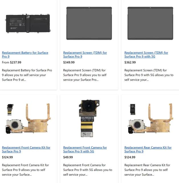 Варто відзначити, що не всі моделі Surface матимуть доступні запасні компоненти, такі як дисплеї, батареї та SSD. Наразі Microsoft продає лише запасну підставку для Surface Pro 7, але новіші моделі, наприклад Surface Pro 9, мають різноманітні компоненти для заміни, включаючи дисплеї, SSD, акумулятори, порти USB-C, зарядні порти Surface Connect і навіть динамік, Wi-Fi, термомодулі.