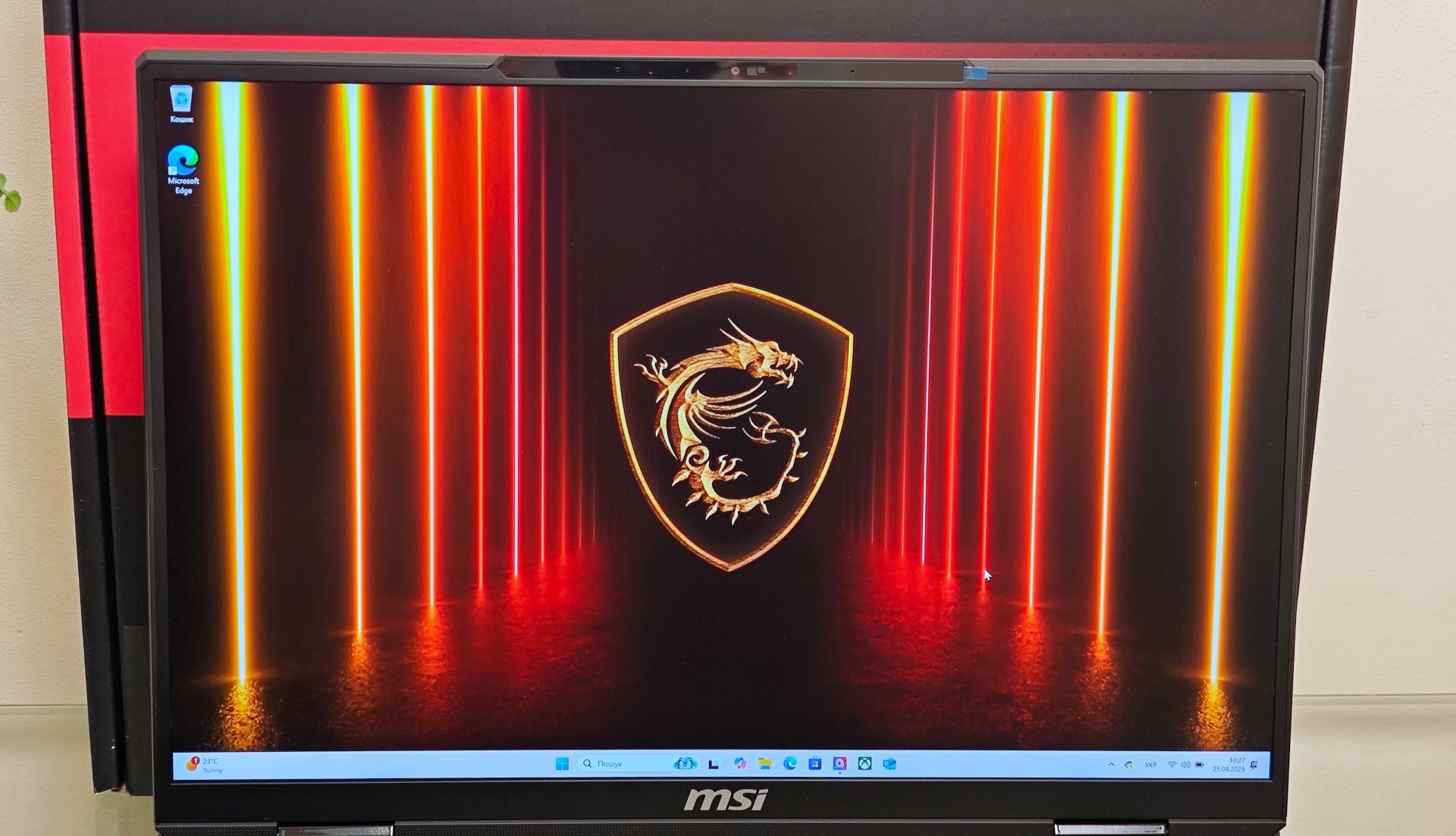 Рамки по периметру екрана MSI Raider 18 HX AI A2XW доволі тонкі, як і в більшості сучасних ігрових моделей. Над екраном під загальним склом — FullHD веб-камера з індикатором роботи, двома мікрофонами та механічною шторкою, а також інфрачервона камера для ідентифікації власника. Тож у користувача є вибір між розпізнаванням обличчя та скануванням відбитка пальців.