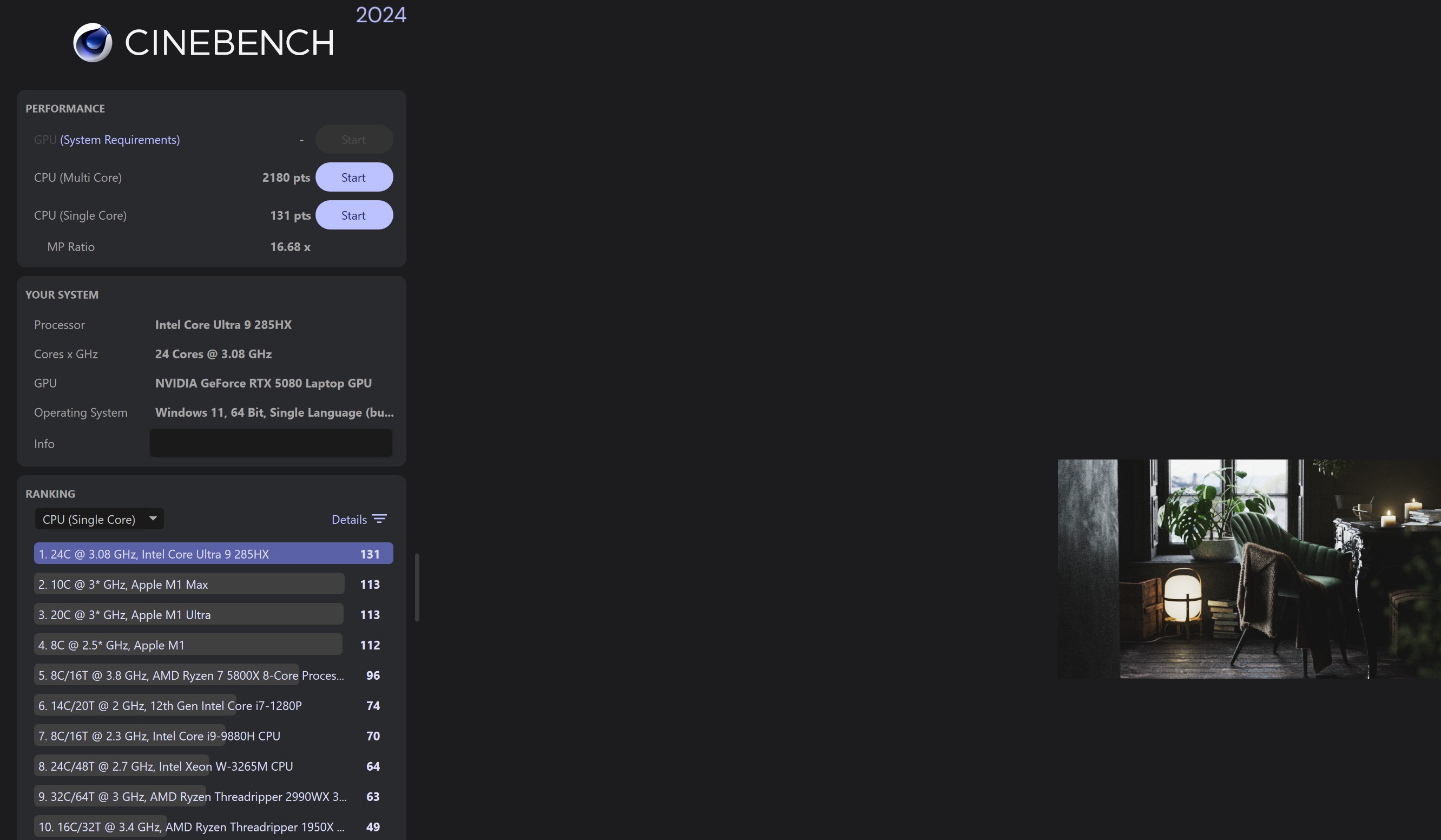 MSI Raider 18 HX AI A2XW — один з найпотужніших ноутбуків, що зараз доступні. Тож не дивно, що в усіх тестах продуктивності він демонструє дуже високу продуктивність, що подекуди може перевершувати стаціонарні ігрові системи. Тож термін "заміна десктопа" цілком доречний у цьому випадку.