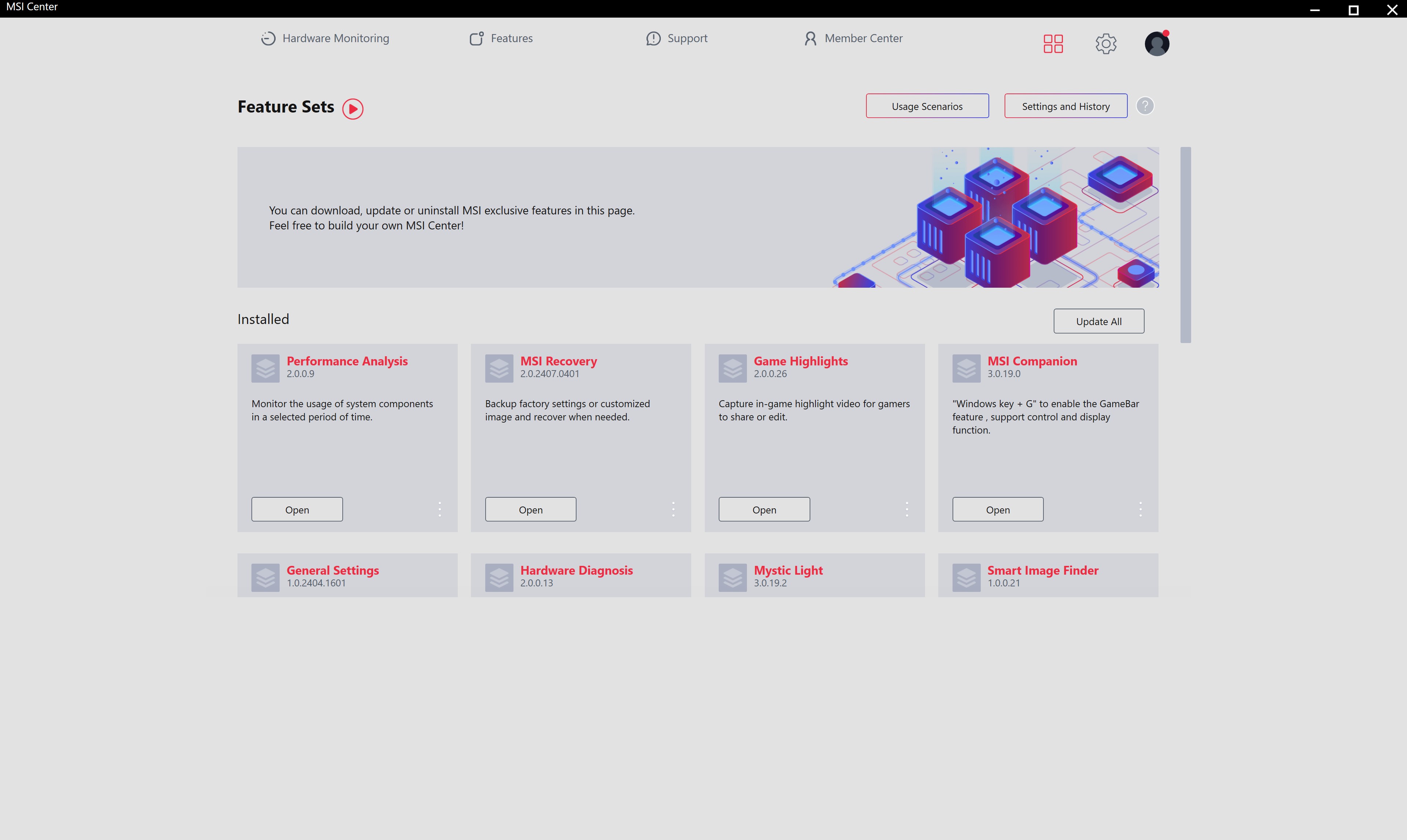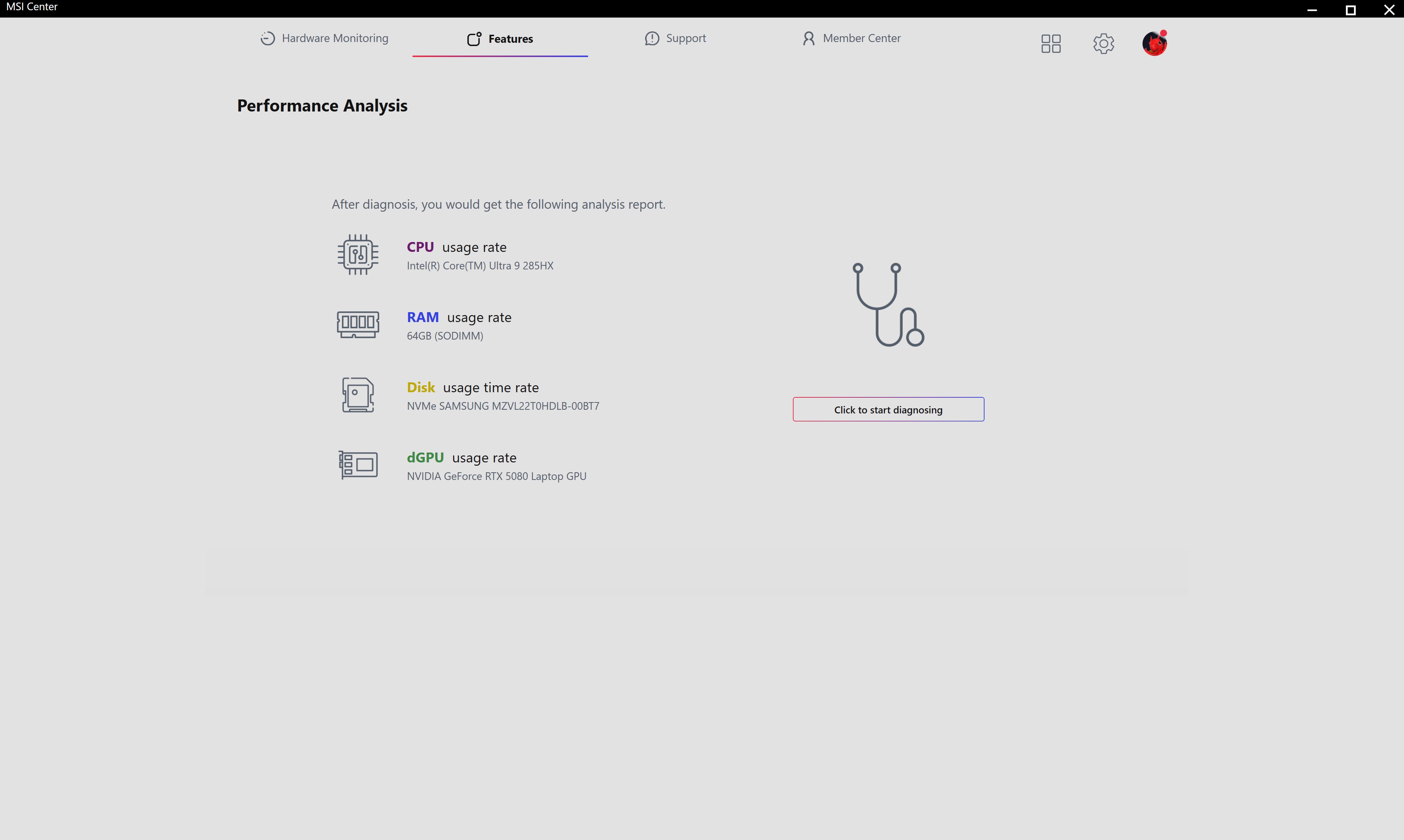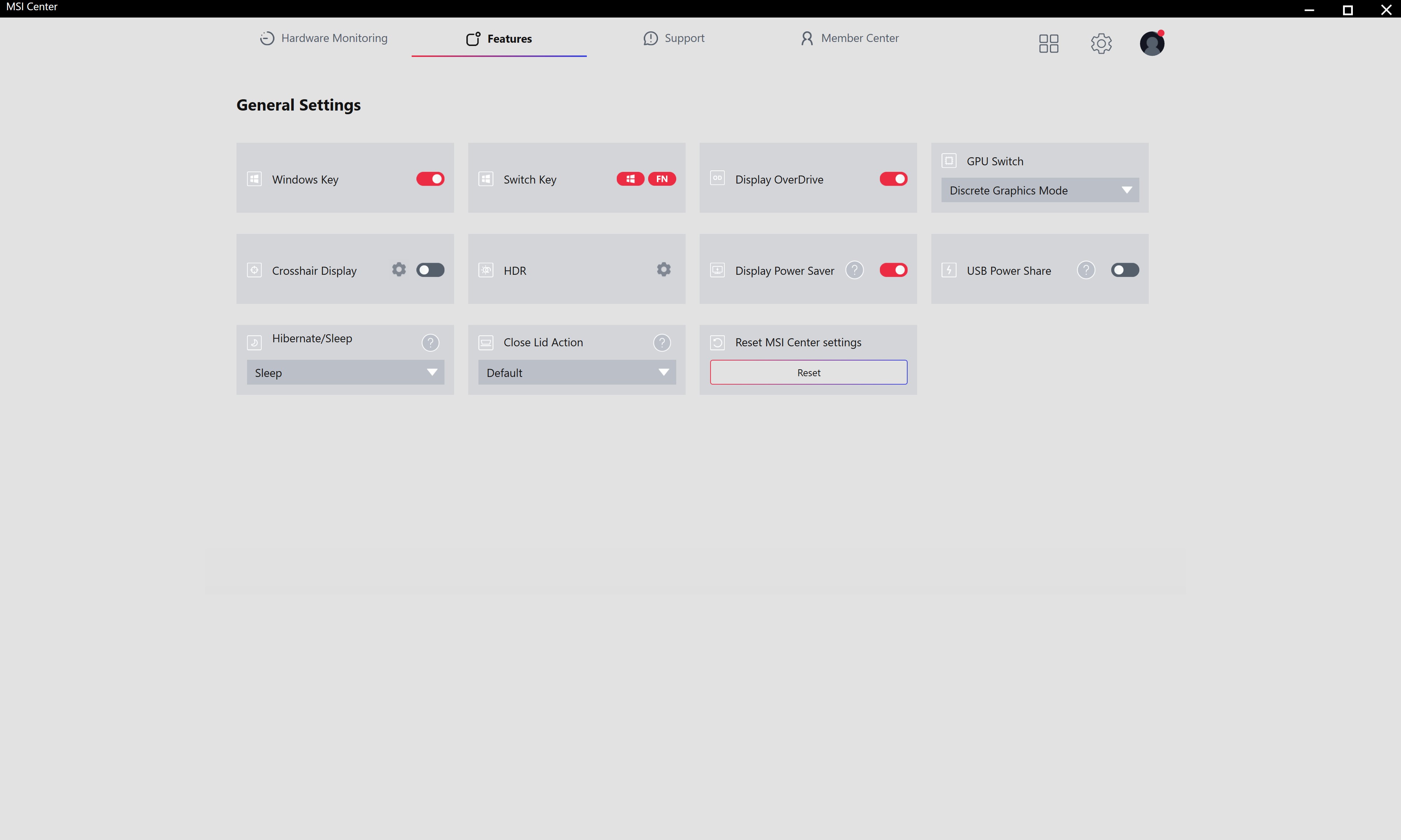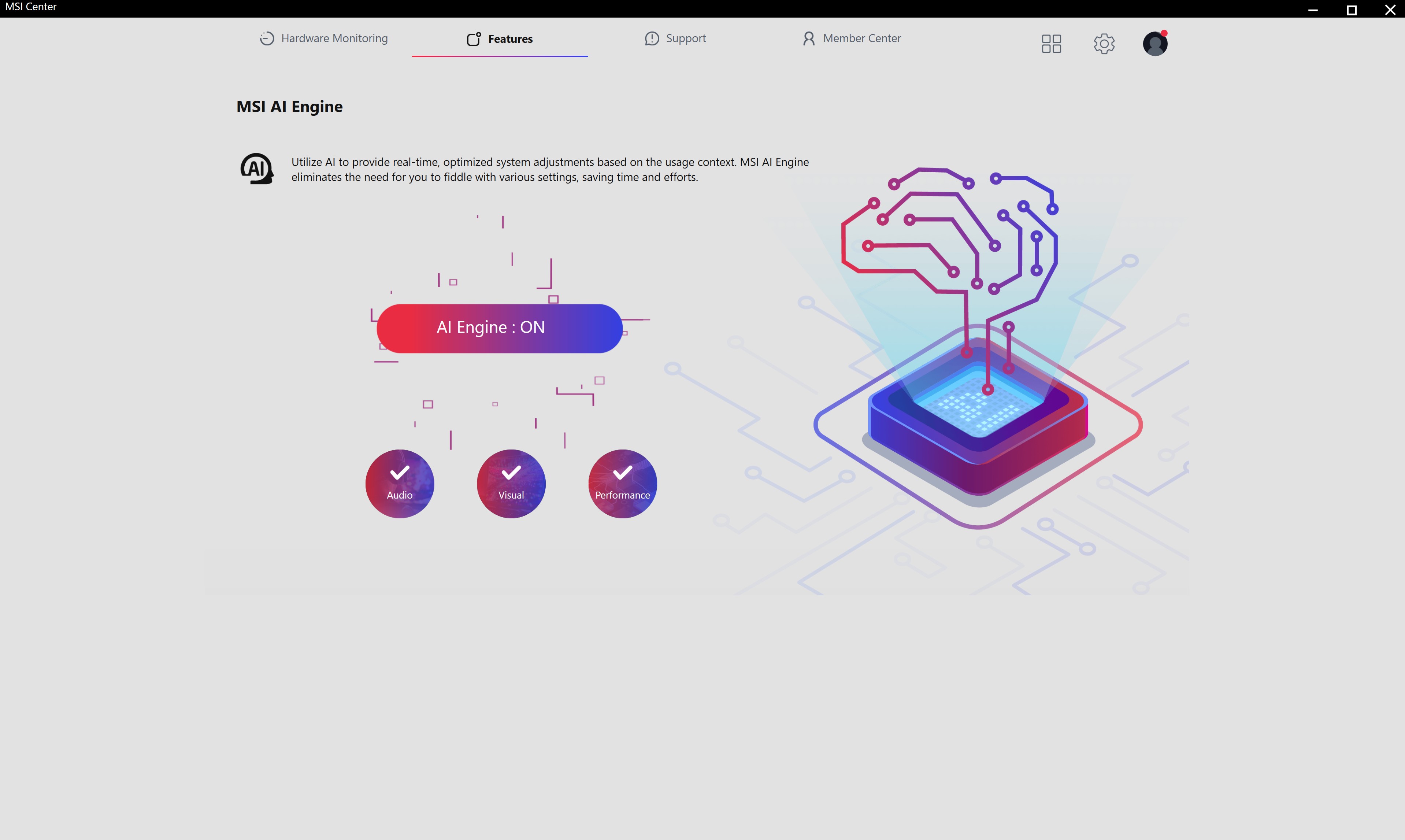 Для налаштування MSI Raider 18 HX AI A2XW використовується три основних застосунки. MSI Center відповідає за усі основні налаштування системи, включно з режимами роботи, відеоприскорювача (MUX Switch), AI Engine (автоматичне підлаштування роботи системи під поточні завдання), моніторинг та діагностика системи тощо.