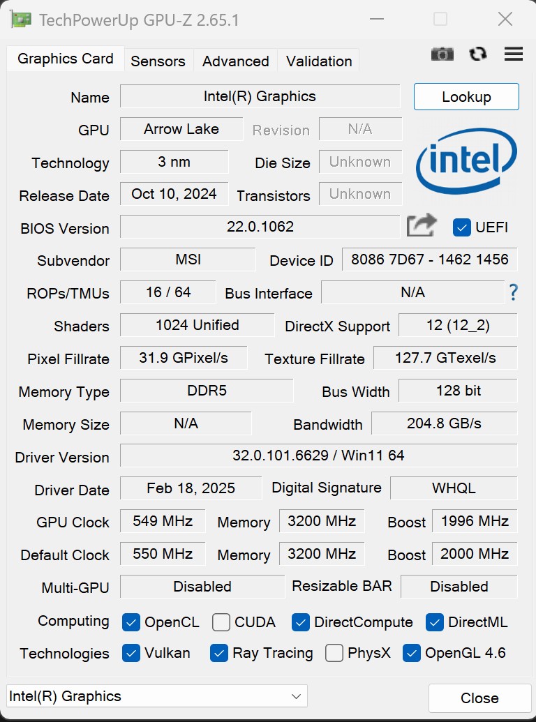 | Процесор | Intel Core Ultra 9 185H (до 5.4 ГГц), 24 (8+16) ядер, 24 потоки, (Arrow Lake) |