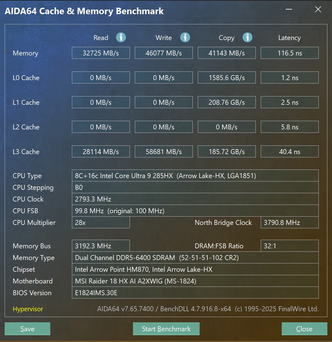Синтетичні тести продуктивності MSI Raider 18 HX AI A2XW