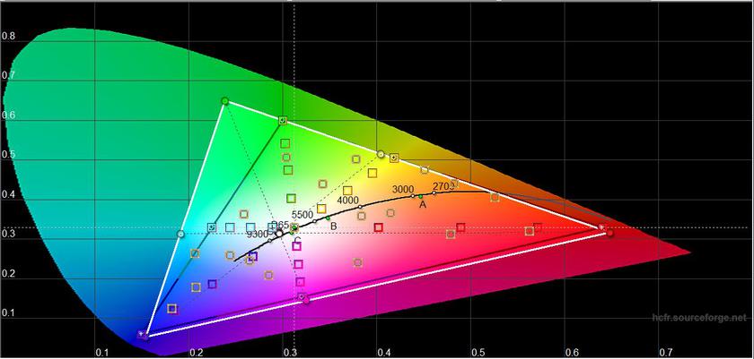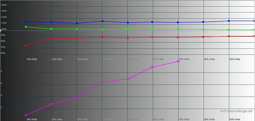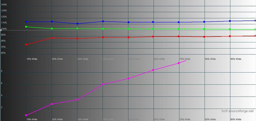 У "Природному" режимі колірне охоплення близьке до sRGB, точність передачі кольорів близька до яскравого режиму. Яскравість трохи нижча: 451.789 кд/м2.
